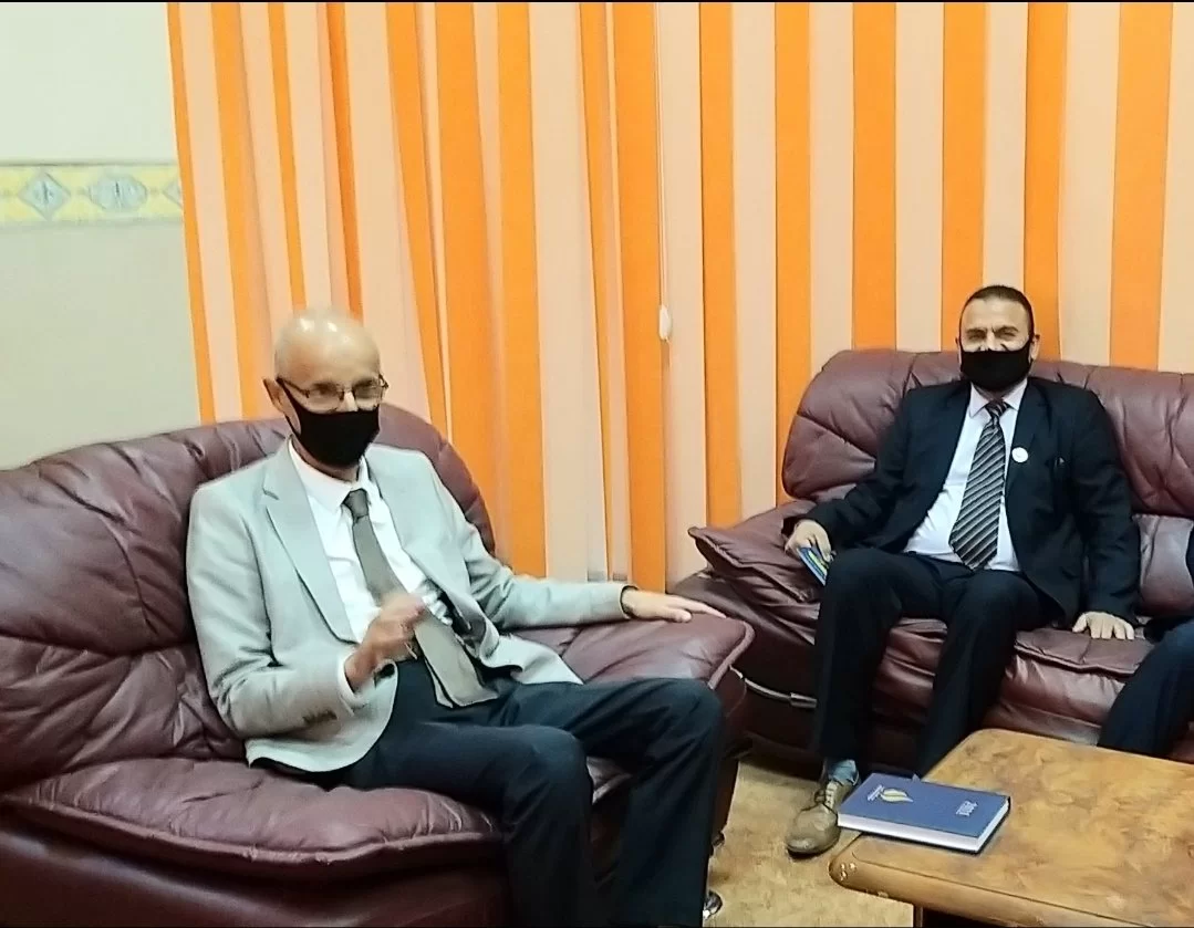 زيارة رئيس الجامعة للكلية بتاريخ 30-09-2021 واجتماعه برؤساء الأقسام للوقوف على الحالة الراهنة واحتياجات الأقسام العلمية والخدمية بها