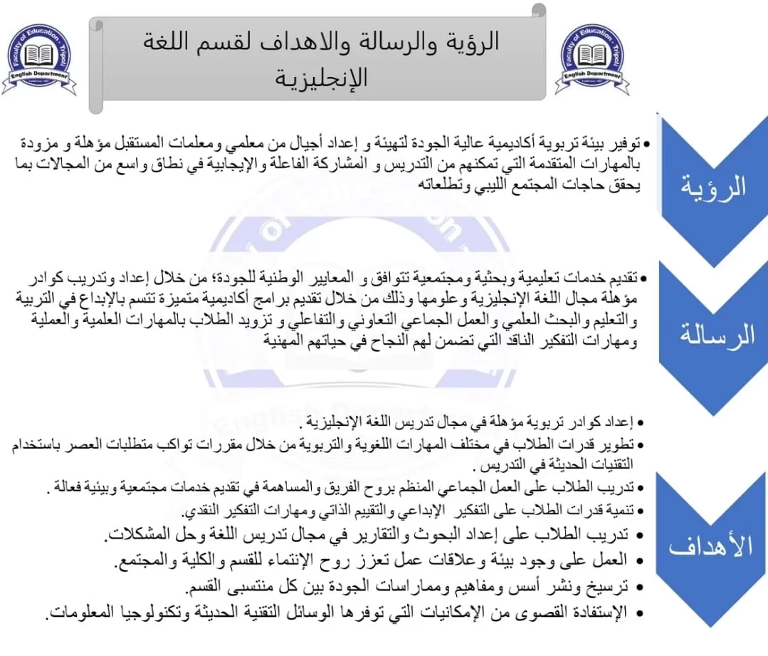 رؤوية ورسالة وأهداف قسم اللغة الانجليزية