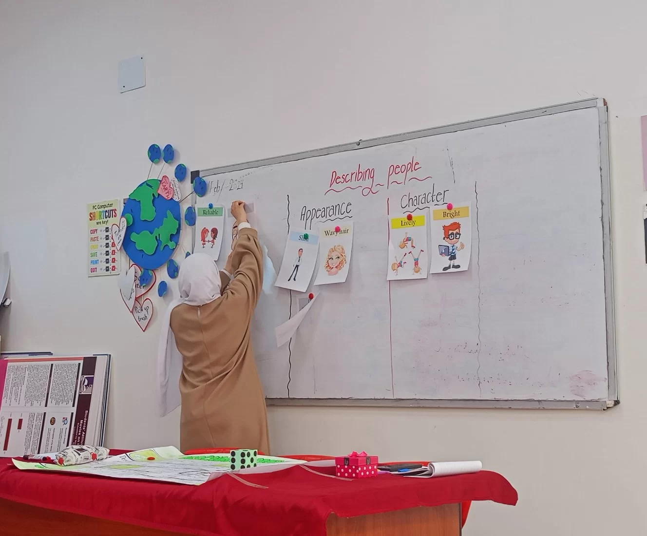 لقاء جديد شهده معمل قسم اللغة الإنجليزية بكلية التربية طرابلس اليوم إستمرارا للورشة التدريبية لمعلمات مرحلة التعليم الأساسي والمتوسط لليوم الثالث على التوالي. اللقاء الذي سلط الضوء على التطبيق العملي لاستراتيجيات التعليم النشط . لقاء جمع بين أجيال تحمل رسالة التعليم لتنير درب الأجيال..في لقاء اليوم المميز ساهمت الطالبتان المتميزتان والمبدعتان: نادية بن فايد ومجدولين بن شويد في عرض و تقديم دروس مختلفة من كتب المنهج الدراسي لمرحلتي التعليم الاساسي والمتوسط باستخدام التعليم التفاعلي النشط.قدمت الطالبة نادية درس رائع وممتع عن تدريس مهارة الاستماع والمحادثة و الطالبة مجدولين جسدت بشكل رائع مهارات التعليم النشط في تدريس مادة القواعد. أما الأستاذة الفاضلة والمتميزة يسرى الغنيمي فقد قامت بعرض تطبيق عملي متقن ومميز عن تدريس مهارة الكتابة التي تعد من أكثر مهارات اللغة أهمية لمتعلم اللغة.وشهدت الورشة تفاعل ملفت للنظر ومشاركات إبجابية زادت الورشة التدريبية أهمية و جاذبية من قبل المعلمات اللاتي تميزن بإلتزامهن وحرصهن على تطوير الذات والنهوض بمسيرة التعليم في مؤسساتنا التعليمية. هذا وسيكون اليوم الختامي للورشة يوم السبت القادم وسيشهد تطبيقات عملية متنوعة من قبل المعلمات المستهدفات في الورشة إن شاء الله تعالى. متمنين لهن كل السداد والتوفيق.شاكرين للجميع جهودهم و إلتزامهم وروعة أدائهم.قسم اللغة الإنجليزية