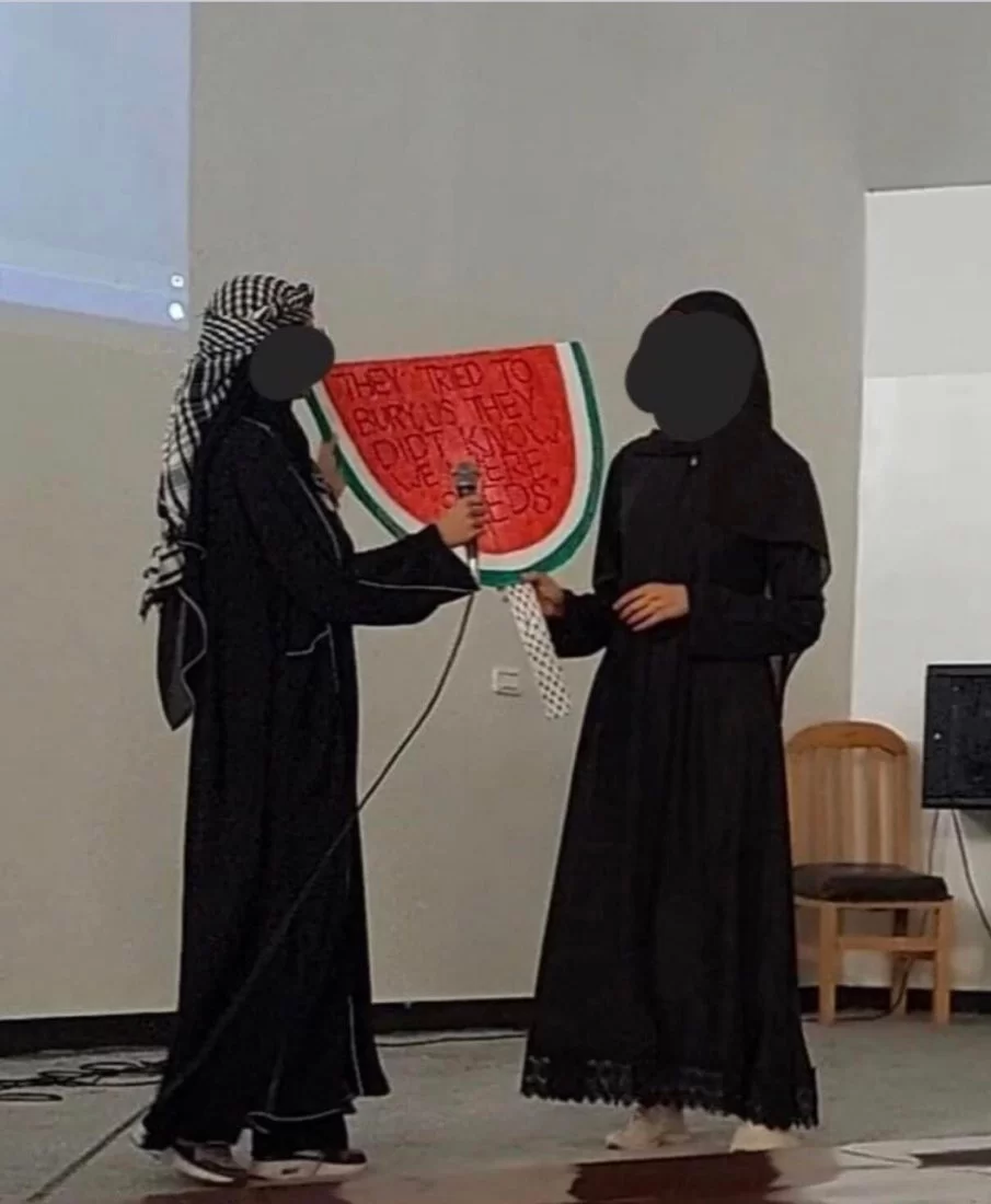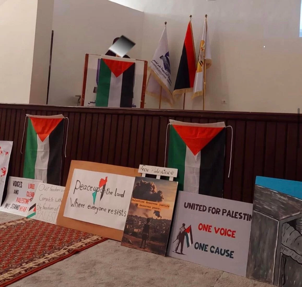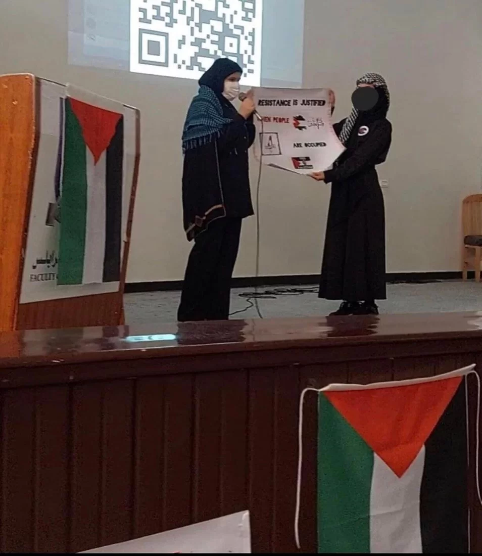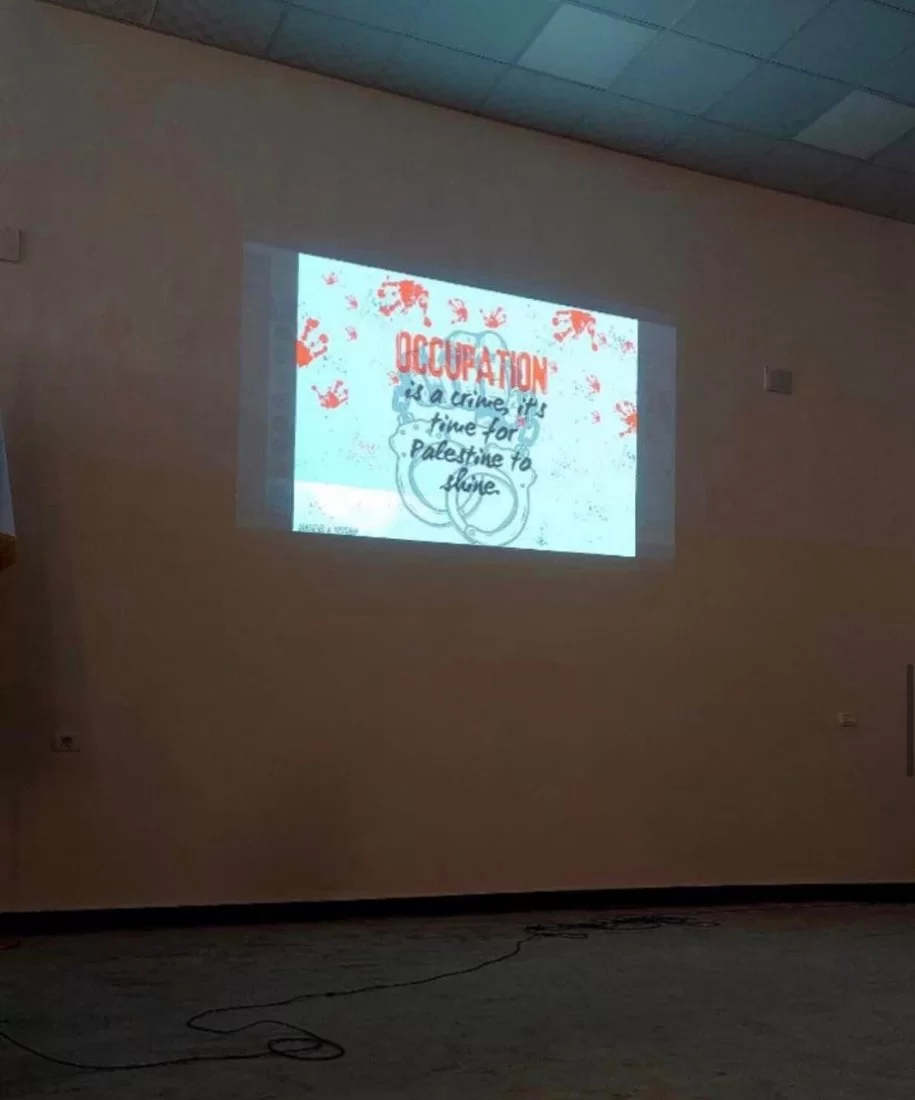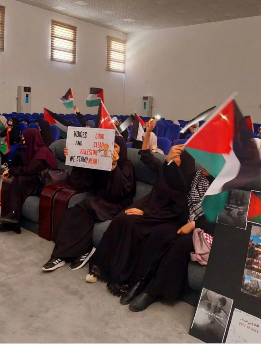 قام طلاب مادة تطوير المفردات اليوم بتاريخ 2024/6/08بتنظيم وقفة تضامنية داخل مسرح الكلية استهدفت استخدام مهاراتهم اللغوية لكتابة جمل وعبارات تعبر عن آرائهم حول القضية الفلسطينية، وقد تم تجسيد هذه الأفكار على لوحات تم عرضها بواسطة الطلاب واحتوت على تعبيرات ابداعية أظهرت مدى استيعاب الطلاب وقدرتهم على استخدام المفردات بطريقة مؤثرة ومعبرة وتعكس مشاعرهم ووجهات نظرهم. الجهود التي بذلها الطلاب اليوم كانت محل تقدير كبير، حيث أنهم لم يقتصروا على استخدام المفردات الجديدة فحسب، بل أيضًا عرضوا قدرتهم على التفكير والتعبير بطريقة فنية مبتكرة. إن هذا النوع من الأنشطة يعزز من مهارات التواصل لدى الطلاب ويشجعهم على التعبير عن أفكارهم بثقة وإبداع وبطريقة تلامس قضايا الساعة وتحاكيها. كل الشكر والتقدير لكل من قاموا على تنظيم هذا الحدث ونخص بالذكر أستاذة المادة ا.هاجر ابورخيص والطالبات اللاتي قدمن هذا النشاط وقاموا بالاشراف عليه.منسق التوثيق و المعلومات