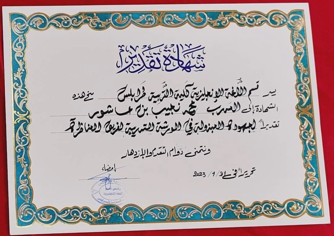 خطوة جديدة من خطوات الإبداع نحو بناء معلم الغد بمهارات المستقبلبدعوة من السيدة منسق النشاط بقسم اللغة الإنجليزية و بدعم من إدارة الكلية استضاف قسم اللغة الإنجليزية اليوم السبت 21\1\2023 عند الساعة العاشرة صباحاَ مدربين من نادي المناظرة بجامعة طرابلس وذلك لإدارة ورشة عمل لأساسيات مهارات وفن المناظرة.الهدف الأساسي لهذه الورشة هو بناء وتأسيس فريق للمناظرة باللغة الإنجليزية كأول فريق بكلية التربية وأول فريق متخصص باللغة الإنجليزية بجامعة طرابلس، وذلك من أجل بناء فريق قادر على المناظرة والحوار والمشاركة في أنشطة ومنافسات المناظرة التي تقام على المستويين المحلي والإقليمي والدولي.كما هدفت هذه الورشة إلى المساهمة في تنويع مجالات النشاط الطلابي بالقسم و تقوية فريق النشاط وصقل المنتسبين إليه بالمهارات اللازمة التي تدعم المهارات اللغوية و ربط ما يدرسه الطالب من مقررات بواقع الحياة اليومية والمواقف الحياتية التي يواجهها الطلاب من جهة و ربط الطلاب و تعميق أواصر التواصل مع القسم العلمي وأساتذته لبناء شخصية معلم المستقبل المتميز.استغرقت الورشة أربع ساعات وتميزت بإبداع المدرب محمد بن عاشور في التقديم والعرض وطرح الأفكار و أسئلة الحوار التي وجهها للحاضرين كما تميزت بحماس و تميز وفاعلية طلاب القسم ومشاركاتهم وردودهم، وتخللت الورشة عدد من التدريبات والتوجيهات التي شدت إهتمام الفريق.تعتبر الورشة بداية لسلسة من الورش التي سيعقدها المدرب مع الفريق و سيتم ربط الفريق بفرق المناظرة بجامعة طرابلس بعد تدريبات للفريق لصقل مهاراته أكثر.قسم اللغة الإنجليزية يتقدم بخالص الشكر والتقدير لنادي المناظرة بجامعة طرابلس خاصة السيدان محمد بن عاشور وأحمد العريفي لتلبيتهم الدعوة والحضور و دعم فريق المناظرة بقسم اللغة الإنجليزية كلية التربية طرابلس.وخالص التقدير والإمتنان للسيد د. عميد كلية التربية طرابلس د.سامي حمدي لدعمه للفريق و تسهيل سبل نجاح هذه الورشة وحرصه على تقديم كافة الخدمات التي تدعم نجاح برامج النشاط الطلابي بالقسم والكلية،والشكر موصول للسيدة منسق النشاط بالقسم أ.حنين المنتصر و الطلاب الذين حضروا الورشة و الطالبة آسيا الزغداني عن إتحاد طلبة كلية التربية والطالبة أروى الأطرش التي خطت شهادات تقدير الضيوف والفريق.سيظل قسم اللغة الإنجليزية يفخر بكادره التدريسي وبطلابه وسيكون الفريق إنطلاقة جديدة لتميز فريق النشاط بكلية التربية طرابلس.#قسم اللغة الانجليزية