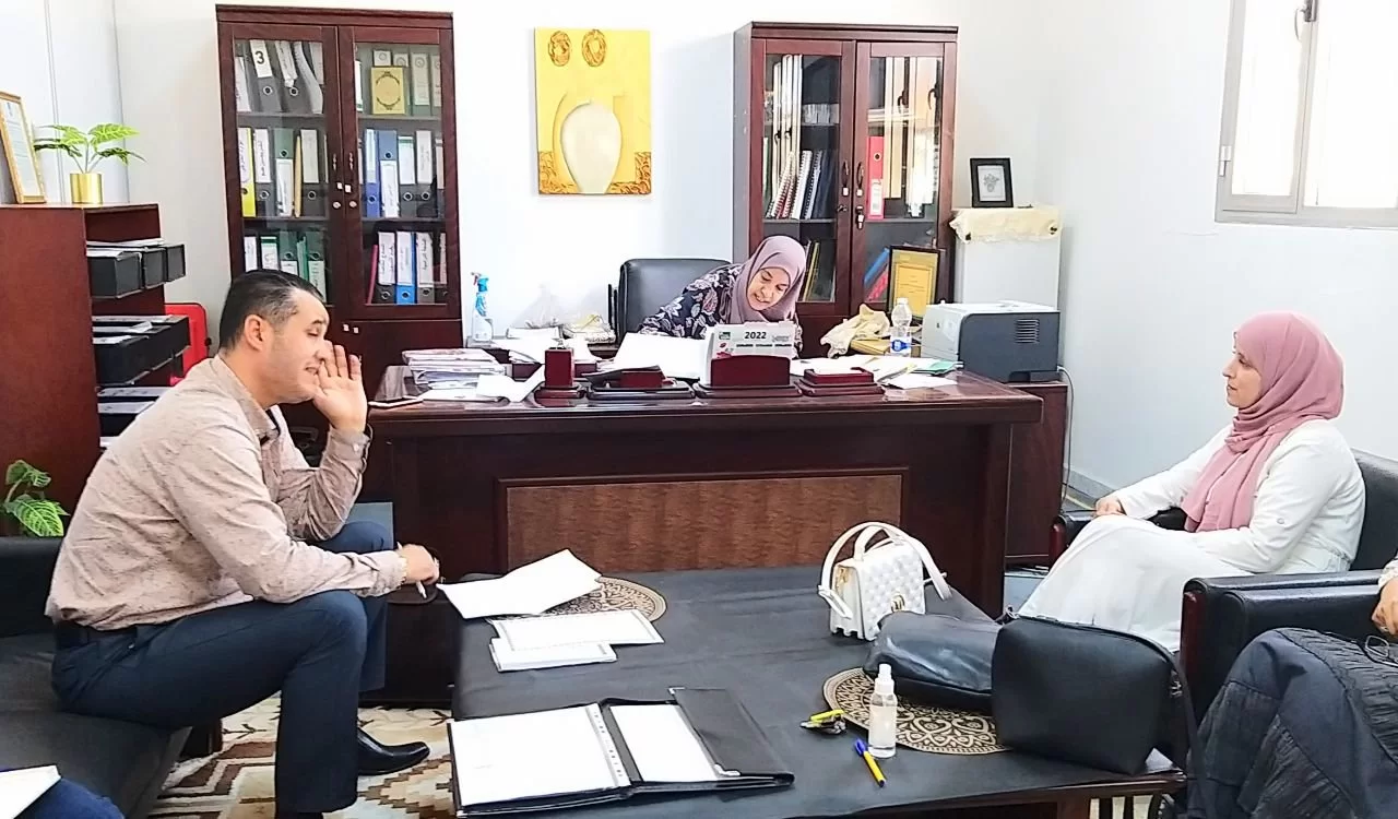 ضمن الزيارات الدورية للجنة التدقيق الداخلي للمكاتب والأقسام الإدارية قامت رئيس اللجنة أ. فوزية الحصان اليوم صباحًا بزيارة قسم الدراسة والامتحانات وطرحت عدة نقاط تتعلق بمعايير الجودة بما يخُص القسم وتم تبادل النقاش مع رئيس قسم الدراسة والامتحانات د. عبد الروؤف عقيلة وتم عرض ماتم إنجازه من مهام وما