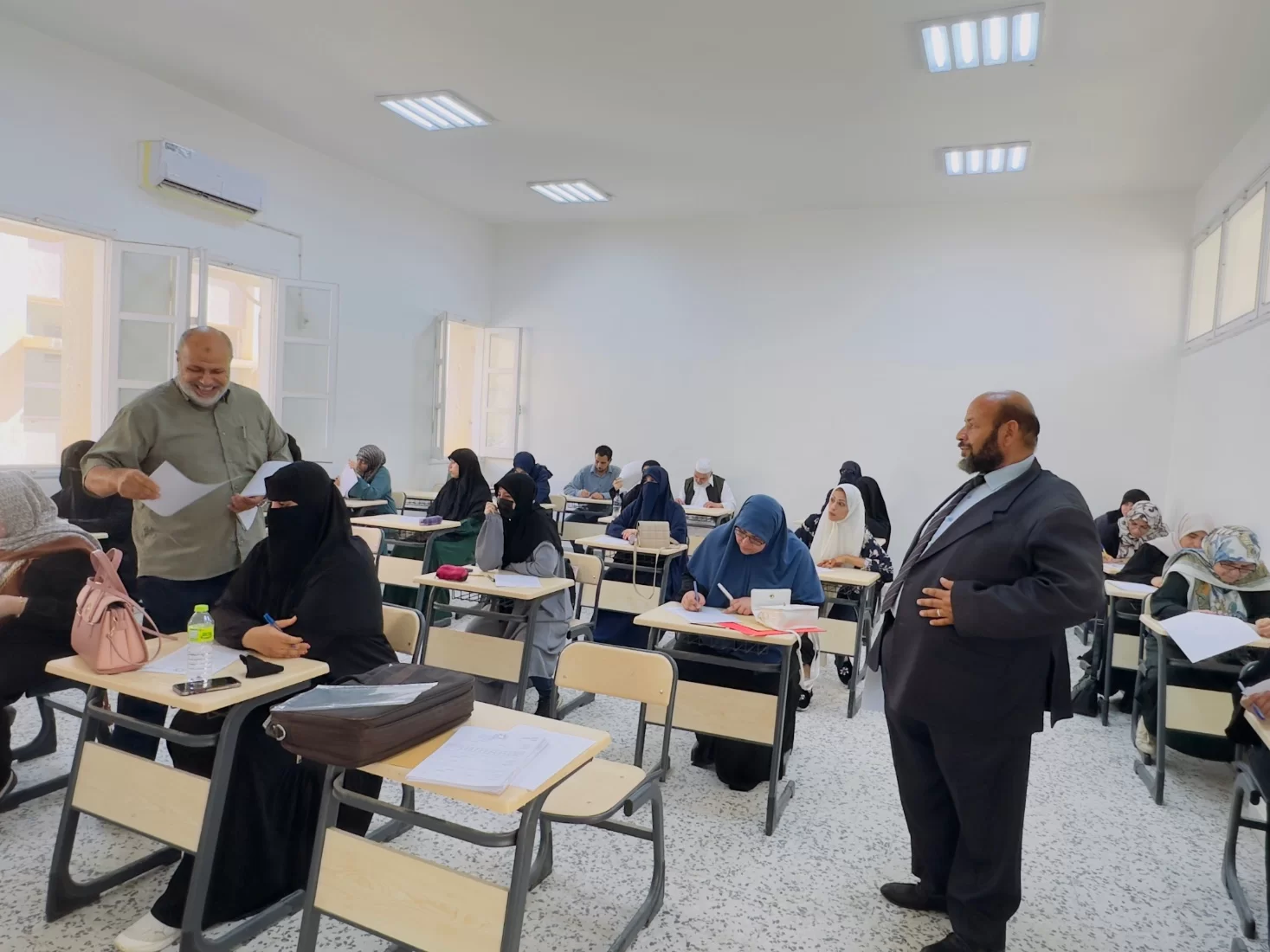 أنهت اللجنة المشرفة على تسيير الامتحانات النهائية عملها بالكلية صباح يوم الأمس الخميس، والذي استغرق مدة أسبوعين حيث خُصص الأسبوع الأول للمواد العامة والتربوية، والأسبوع الثاني للمواد التخصصية.جرت الامتحانات بانسيابية تامة وذلك تبعًا لتنظيم وإشراف ومتابعة رئيس وأعضاء اللجنة، بالتعاون مع رئ
