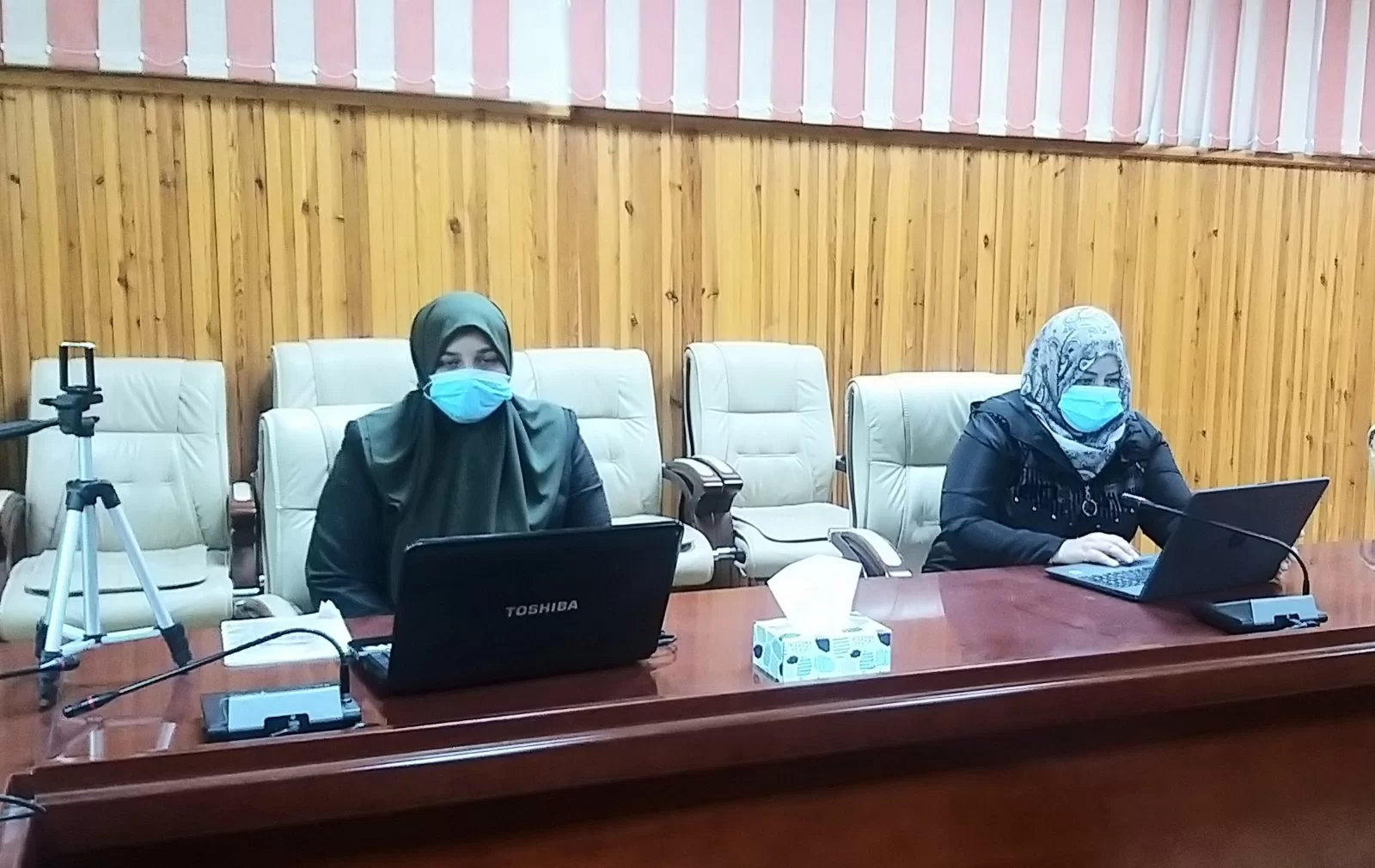 شرّفنا السيد العميد د. سامي حمدي والسيدة وكيل الكلية المكلف أ. سارة بن زقلام بحضورهما تجهيزات الورشة وإعدادها للبدء فيها دعمًا منهم لنا، وتمنّيا لنا التوفيق في أداء عملنا.