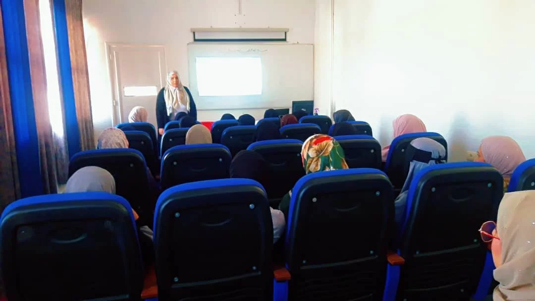 نشاطات خدمة البيئة والمجتمع بالقسم .في إطار الرفع من مستوى العملية التعليمية بقسم رياض الأطفال والتربية العملية بصفة خاصة . قامت منسق خدمة المجتمع والبيئة بالقسم .أ. سعاد الصيد بإلقاء محاضرة بعنوان ( تطبيقات عملية في التربية العملية ) وتناولت عدة محاور وهي كالتالي : 1-