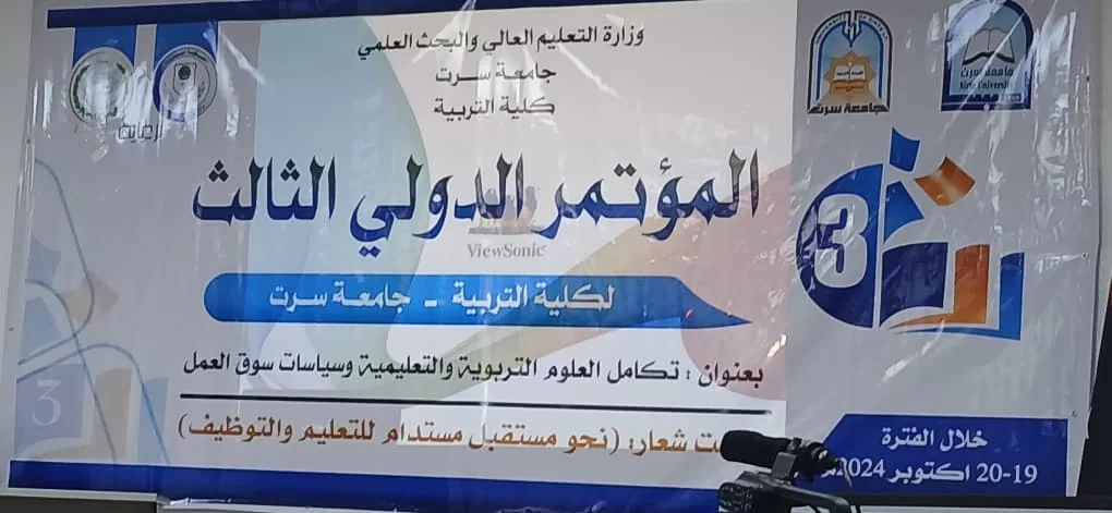 مشاركة السيدة الدكتورة ليلى رمضان جويبر في المؤتمر الدولي الثالث لكلية التربية جامعة سرت بعنوان تكامل العلوم والتربوية والتعليمية وسياسات سوق العمل .