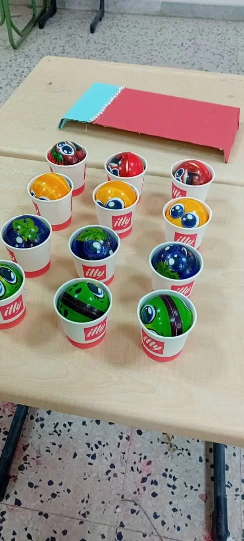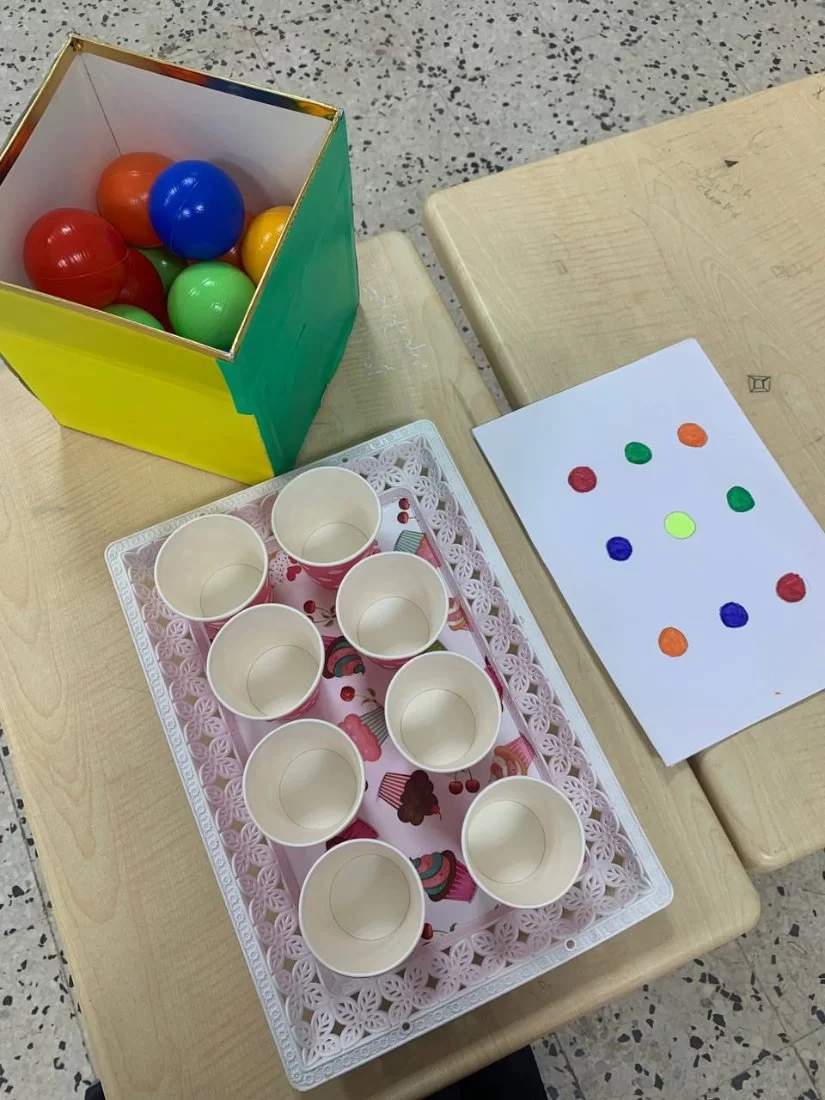 - ترتيب الكور مع الأكواب: يساعد في تحسين مهارات التصنيف والتنسيق الحركي.