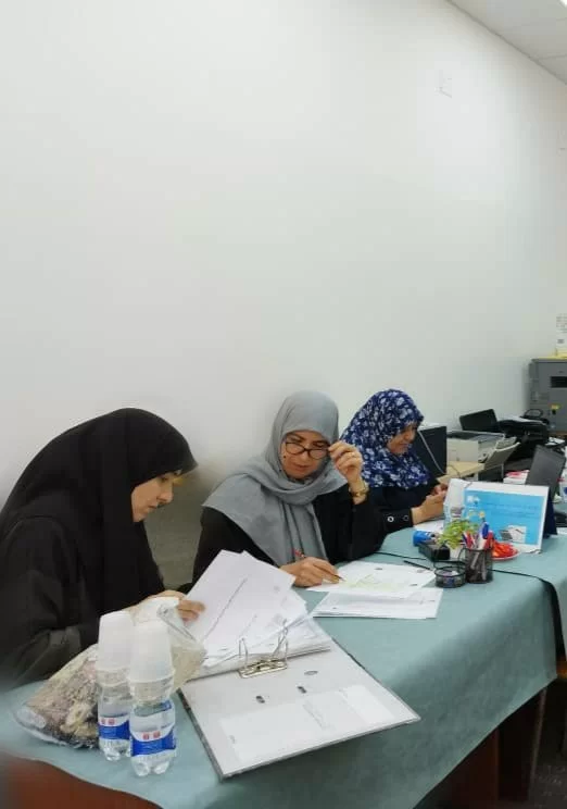 #متابعاتمتابعات اليوم الرابع للدراسة الذاتية.واصل فريق الدراسة الذاتية مهامه في التدقيق على معايير الجودة لليوم الرابع، حيث اجتمعت اللجنة اليوم الأربعاء الموافق 10/7/2024بواقع جلستين. في الجلسة الأولى، تم التدقيق على المعيار الخامس "المرافق والخدمات التعليمية"، والذي ي