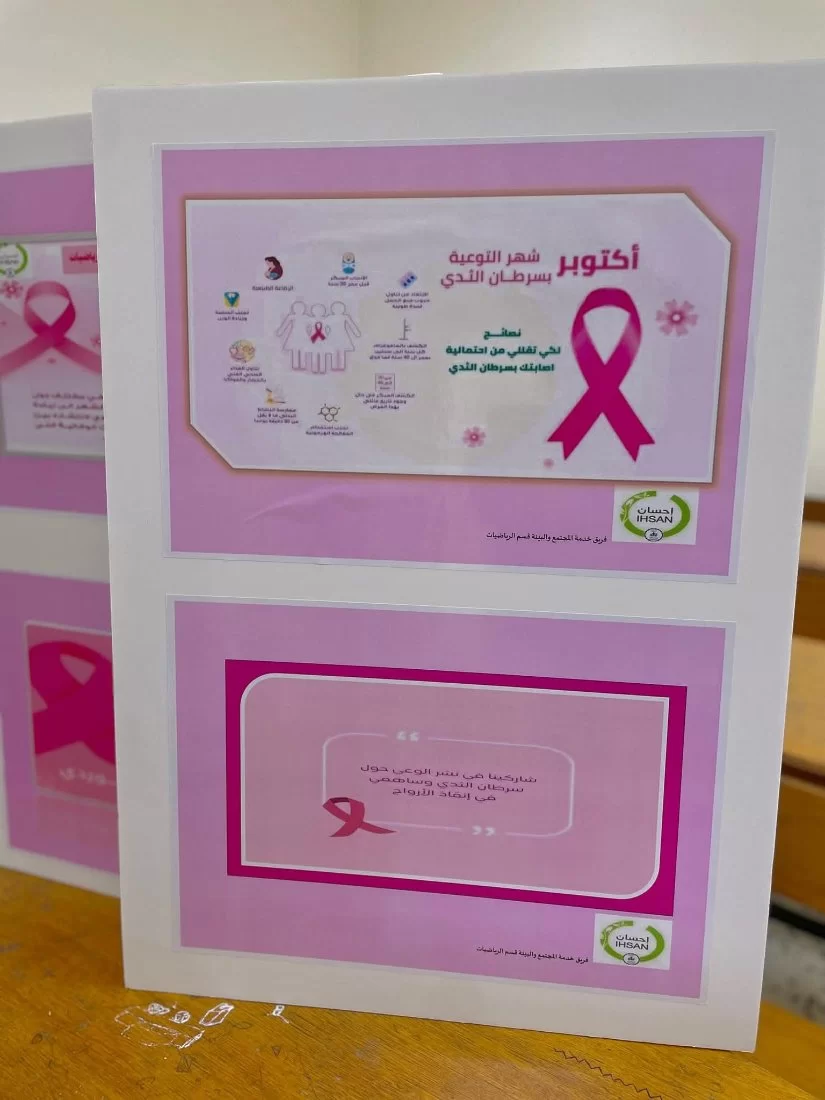 في يوم السبت الموافق 19 أكتوبر 2024، شهد مسرح الكلية حملة توعوية ضد مخاطر سرطان الثدي، حيث شاركت طالبات قسم الرياضيات بشكل فعّال تحت إشراف أ. عائدة قرادة، منسق النشاط بالقسم. كما كانت هناك مساهمة متميزة من أ. فوزية الحصان. تعتبر هذه الأنشطة ضرورية لرفع الوعي حول المخاطر الصحية، وتعكس التزام الطالبات بالمشاركة الفعّالة في قضايا المجتمع.