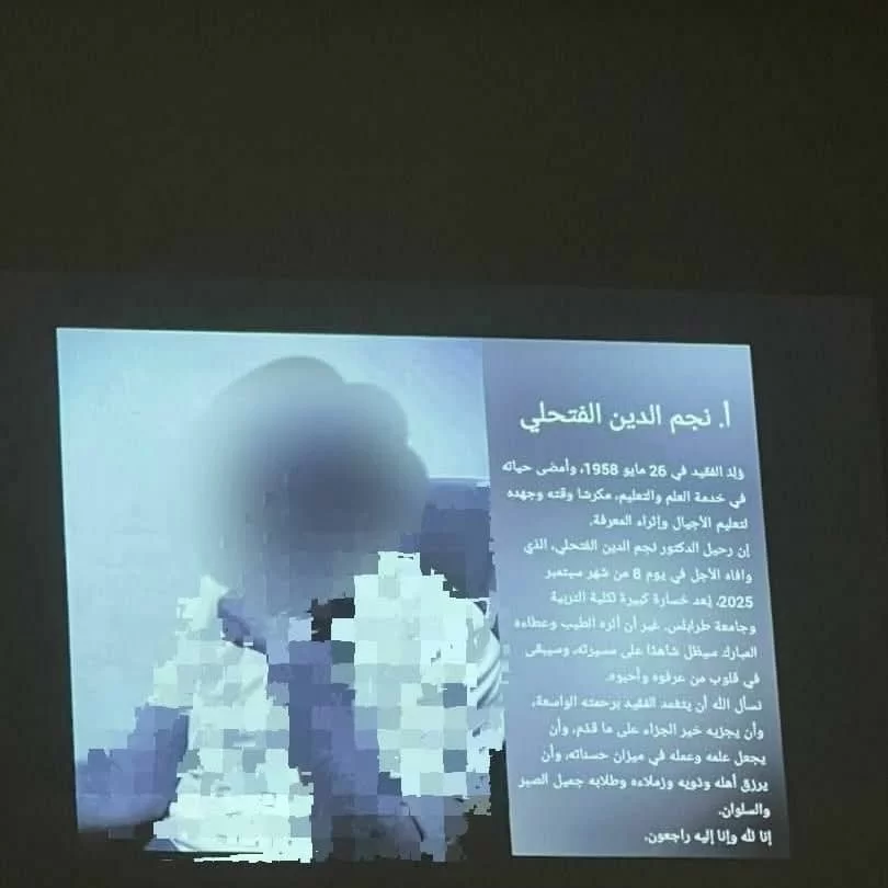 وقد قدّمت الدكتورة زهرة فرنانه كلمة عن قسم الرياضيات، استعرضت فيها مسيرة المرحوم نجم الدين الفتحلي، مشيرة إلى إخلاصه وتفانيه في العمل، ودوره البارز في خدمة طلابه وزملائه، وإسهاماته الأكاديمية والإدارية التي أسهمت في تطوير القسم والعملية التعليمية، تاركًا أثرًا طيبًا في نفوس الجميع.