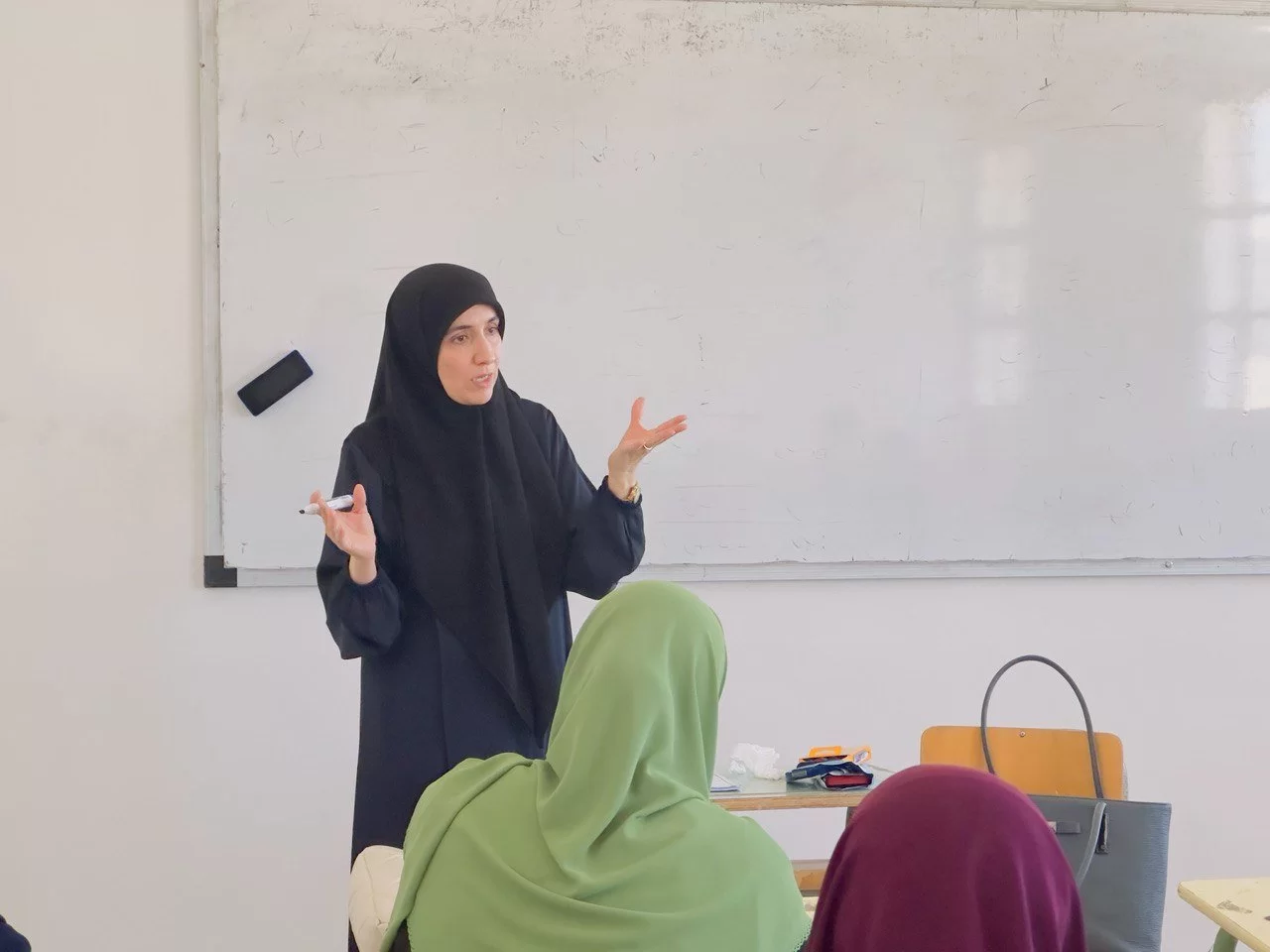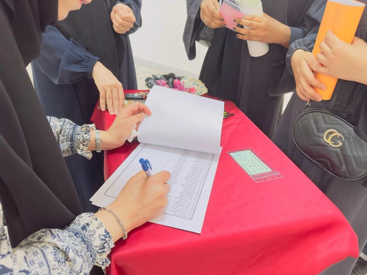 كان في استقبال الطالبات السيدة/ رئيس قسم الرياضيات د. ربيعة عويدان وأعضاء هيئة التدريس القائمين بالدورة رحبوا بهنّ وقاموا بتسجيل حضورهنّ بالقوائم المُعدّة لذلك، وتقسيمهنّ لمجموعتين وتوزيع كل مجموعة في قاعة دراسية على فترتين وفق جدول الدورة.