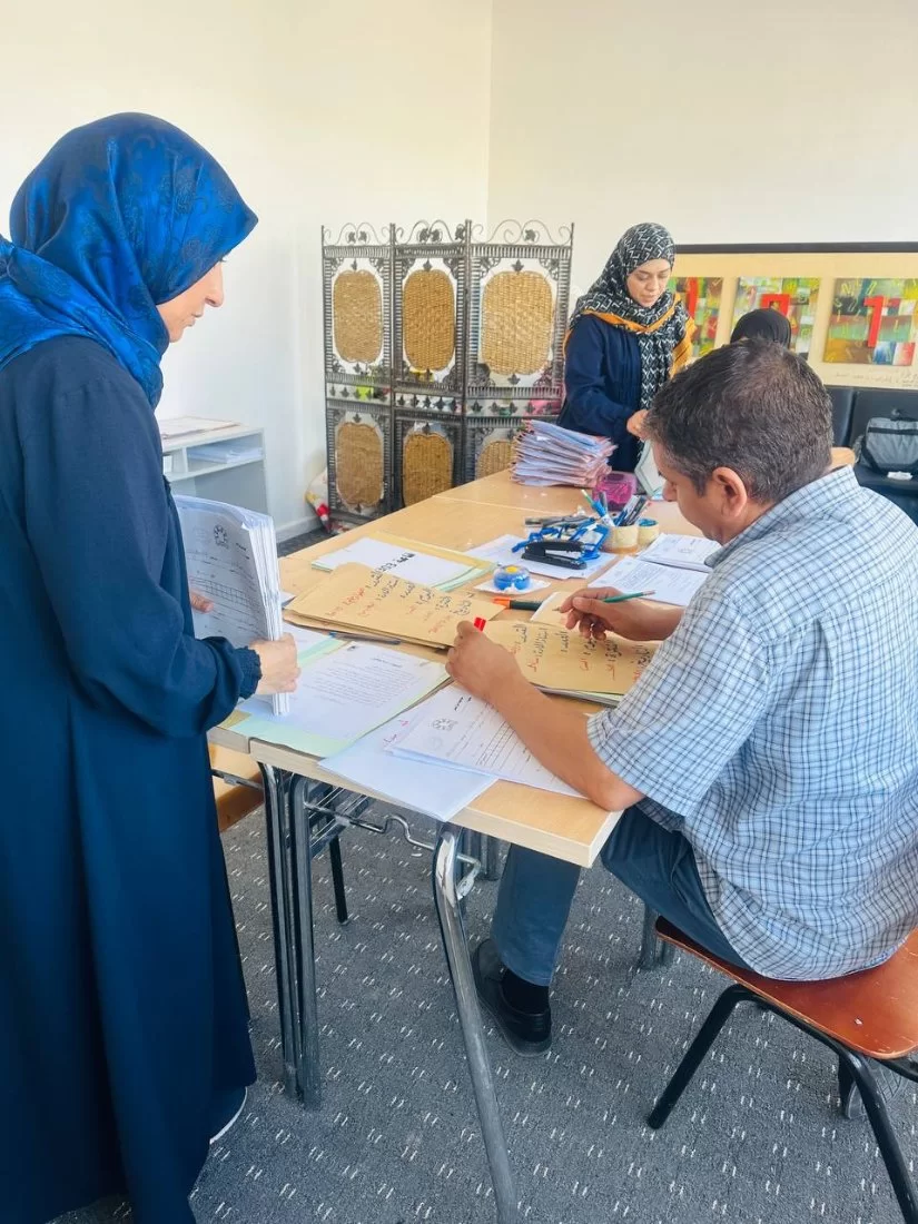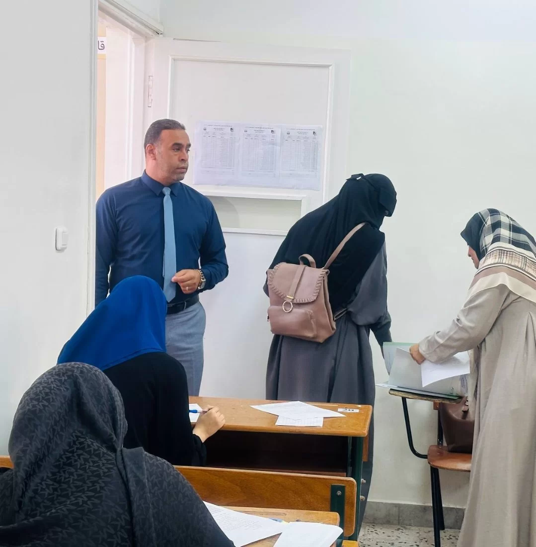 ووفقًا للألية التي تتخذها اللجنة كل فصل دراسي في فترة الامتحانات النهائية تم توزيع الملاحظين مع نماذج الأسئلة على جميع اللجان، والاشراف العام على هذه اللجان للتأكد من عملية توزيع الأسئلة على كافة الطلبة الممتحنين داخلها بكل يسر، في الفترتين الصباحية والمسائية.
