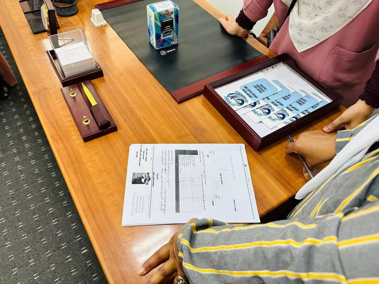حيث تم في أجواءٍ تسودها الأُلفة والود والمحبة الأخوية بحضور أعضاء اللجنة، إجراءات تسليم واستلام إدارة قسم البحوث والاستشارات والتدريب بالكلية بين:د. انتصار الشريف الرئيس السابق للقسم وبين أ. أماني سليمان رئيس القسم الحالي.
