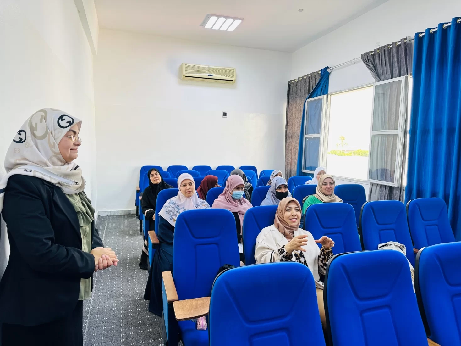 كما أثنت إدارة الكلية على عمل أفراد الكادر الوظيفي بإشراف مكتب الشؤون الإدارية في تجهيز هذه القاعة بالمجهودات الذاتية على الشكل المطلوب، وباركت جهودهم المبذولة لإظهار الكلية في أبهى صورة بما يليق بمؤسسة علمية تعليمية يتلقّى فيها العلم والمعرفة.