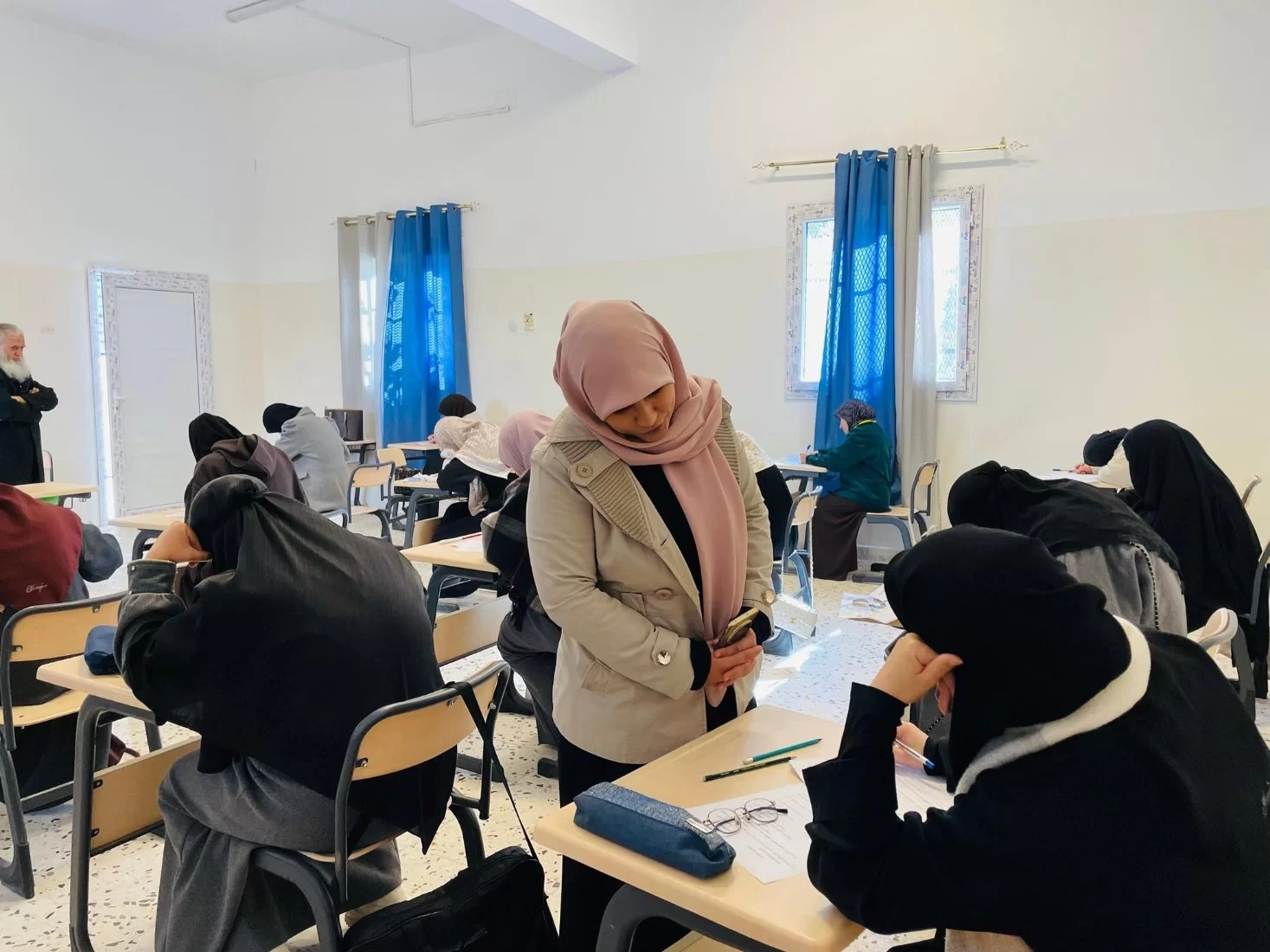 انطلقت في كلية التربية طرابلس الامتحانات النهائية لطلبة الدراسات العليا ( الماجستير ) بقسم اللغة العربية والدراسات الإسلامية، للفصل الدراسيّ الخريف 2024، وقد تفقدت السيدة وكيلة الشؤون العلمية أ. منال الحافي إجراءات أداء الامتحانات النهائية للدراسات العليا في القاعات المخصصة لذلك، وقد استمعت من الطلبة الممتحنين عن موضوعية الأسئلة وطبيعتها. وقد ثمنت السيدة الوكيلة الجهود الاستثنائية للهيئة التدريسية لطلاب الدراسات العليا في تذليل المعوقات واتخاذ القرارات المناسبة بما يلائم ومتطلبات الامتحانات.نرجو للجميع دوام التوفيق والنجاح