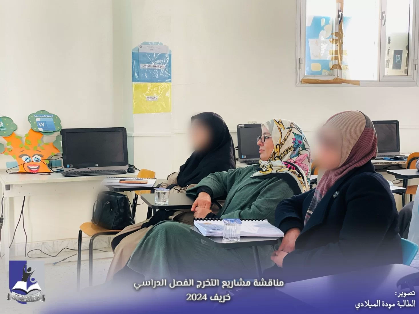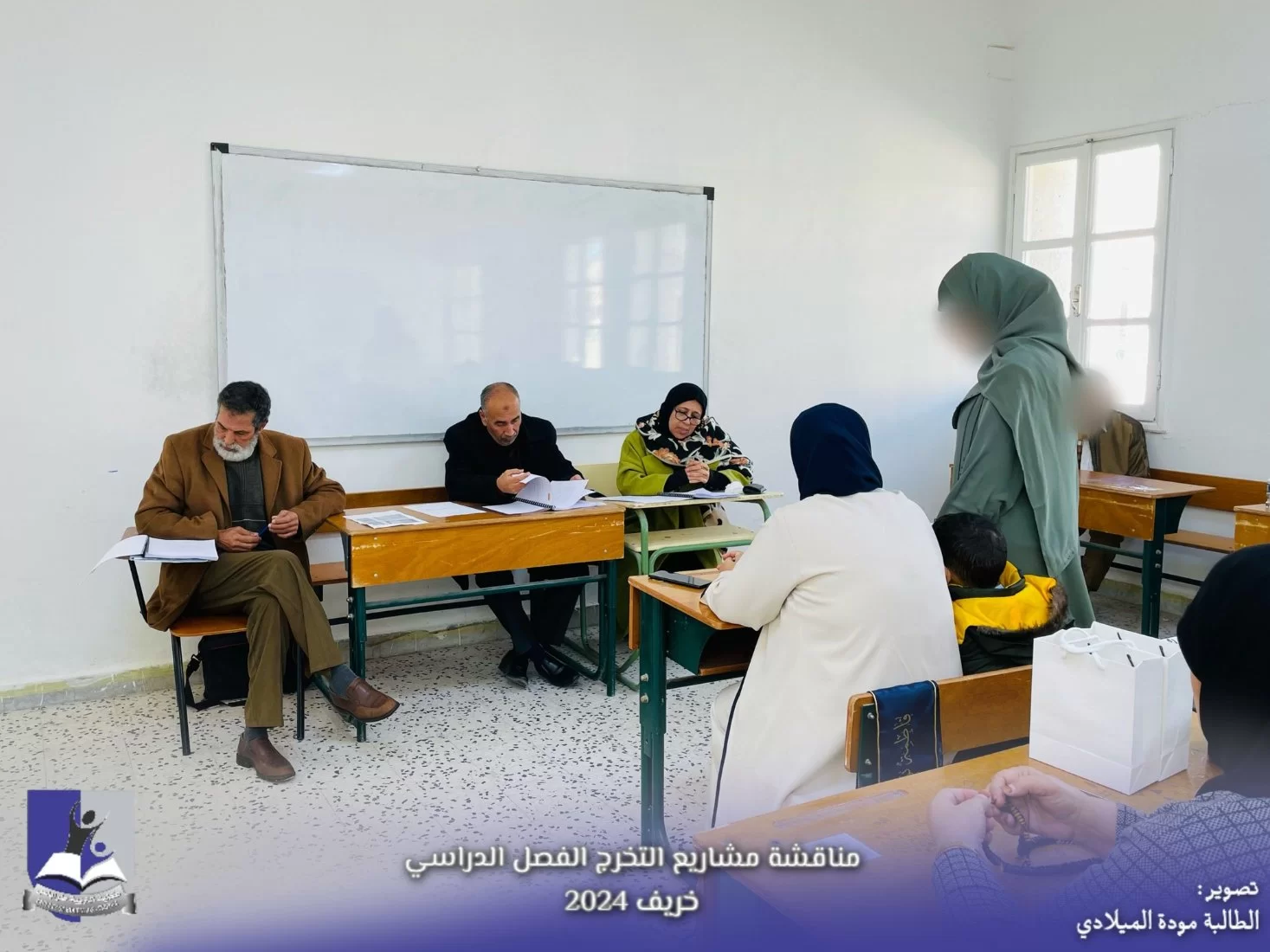 وسط أجواءٍ من الفرحِ والاحتفاءِ بالإنجازات العلميّة التي تمّ تحقيقها، شهدتْ كلية التربية طرابلس من يوم السبت الموافق 18-1-2025 إلى يوم الأربعاء الموافق 22-1-2025 تنظيم جلسات مناقشة مشاريع التخرج لعدد مائة وخمسة وعشرين (125) طالبة من طالبات الكلية موزعة على أحدَ عشرَ قسما خلال الفصل الدراسيّ الحالي (الخريف 2024)، حيث عرضت الخريجات أعمالهنّ البحثية أمام لجنة من الأساتذة المختصين، تناولت المشاريع مواضيعَ متنوعة تشمل مجالات عدة منها تخصصية وتربوية، وتقنيات التدريس وسبل تحسين البيئة التعليمية، وغيرها من الموضوعات التي تسهم في الارتقاء بمستوى التعليم...أعربتْ إدارة الكلية عن إعجابها بالمستوى العالي للأبحاث المقدمة، وأثنتْ على الجهود المبذولة من قبل الطالبات والإشراف المتميز من قبل أعضاء هيئة التدريس. ومن جانبه تؤكد هذه المشاريع على دور الكلية في إعداد معلمين مؤهَلين وقادرين على مواجهة تحديات المستقبل.وهذا يعود لدور أعضاء هيئة التدريس بالكلية في توجيه وإرشاد الطالبات، وكذلك الدعم الذي تقدمه الكلية للطالبات لإنجاز مشاريعهنّ.وفق الله الجميع