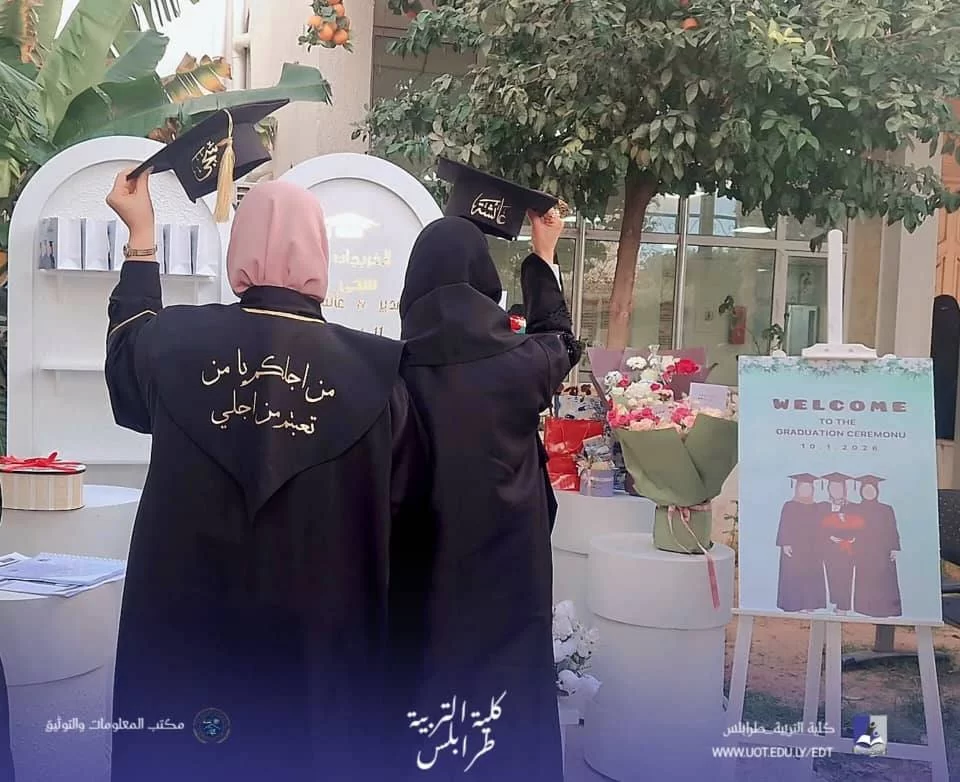 #كلية_التربية_طرابلس#مشاريع_تخرج| #متابعات | تشهد كلية التربية اليوم الأحد الموافق 11 / 1 / 2026م انطلاق مشاريع التخرج، في محطة علمية مهمة تُجسّد خلاصة سنواتٍ من الجدّ والاجتهاد والعطاء.وبهذه المناسبة، تتقدّم الكلية بخالص الشكر والتقدير إلى طالباتنا العزيزات على ما أبدينه من التزامٍ وطموحٍ وروحٍ أكاديمية مسؤولة، متمنّين لهن دوام التوفيق والنجاح في إنجاز مشاريع تخرج تليق بمستواهن العلمي، وتسهم في بناء مستقبل مهني واعد.كل الأمنيات لكن بمسيرةٍ جامعية موفقة، وخطى ثابتة نحو التميز والريادة. م. م. ت
