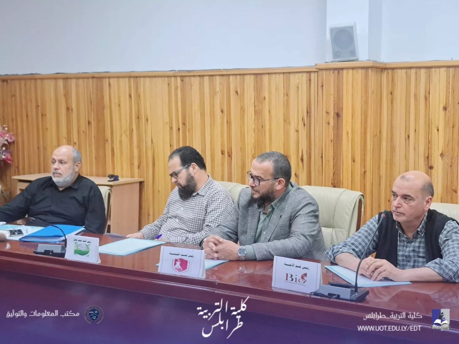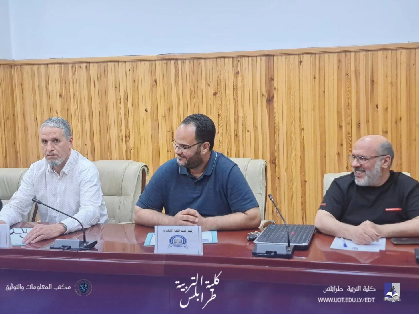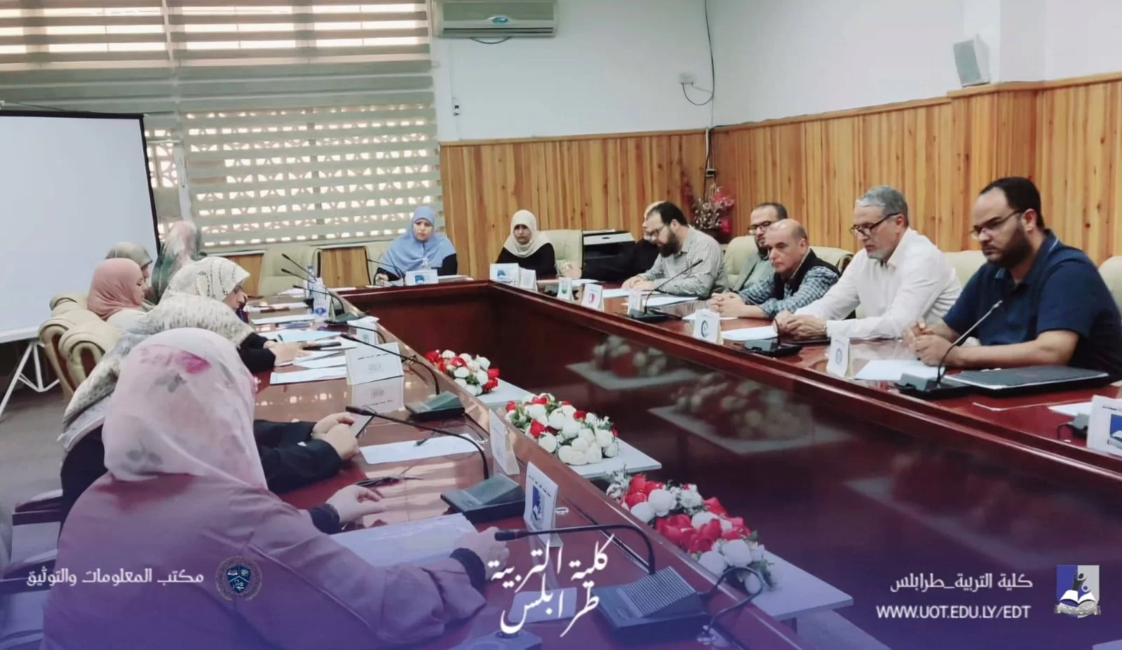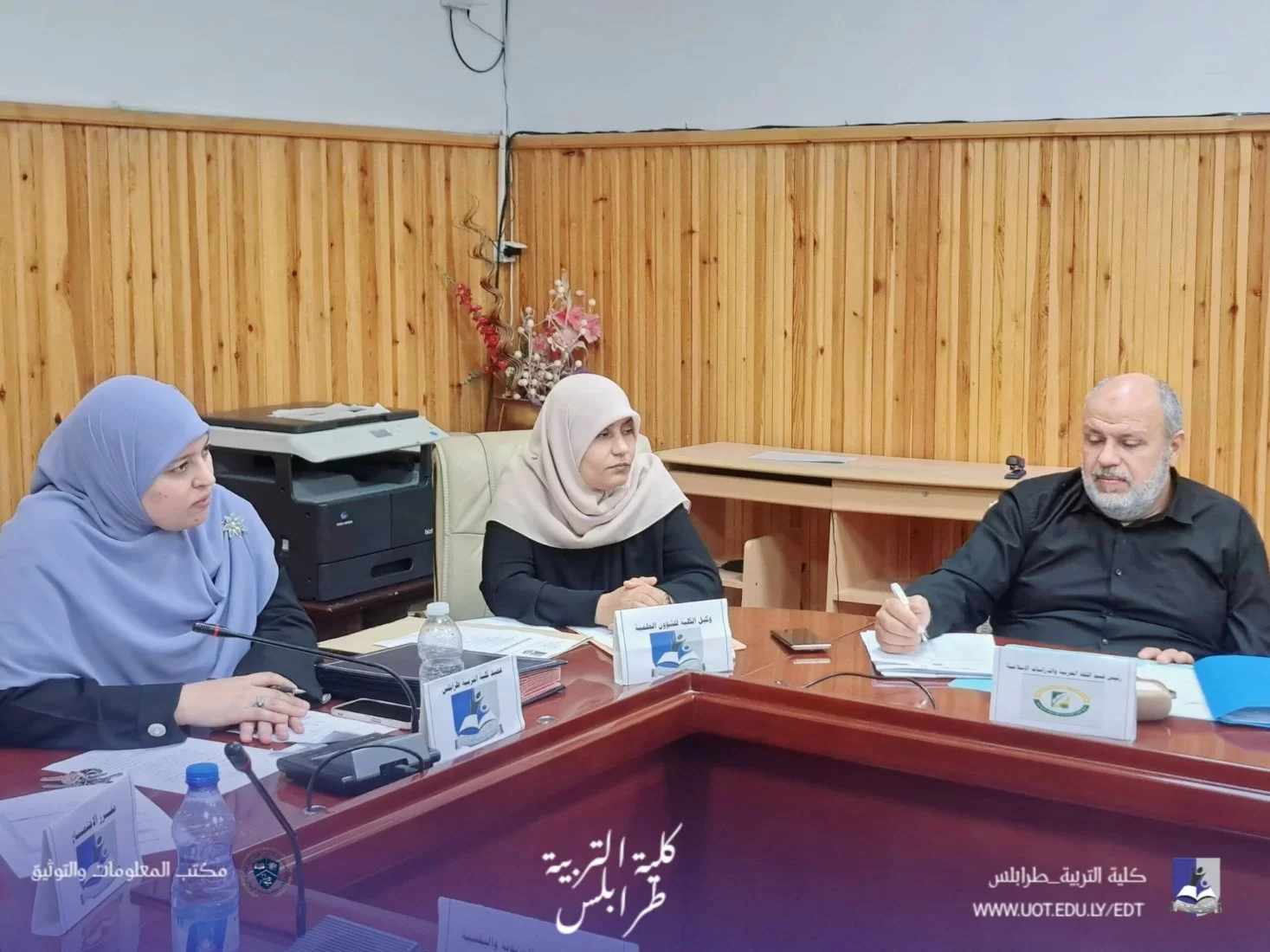 #كلية_التربية_طرابلس | #متابعات | مجلس كلية التربية يعقد اجتماعه العادي الثالث للعام الجامعي 2026معقد مجلس كلية التربية - جامعة طرابلس صباح اليوم الاحد الموافق 12 - 4 - 2026 اجتماعه العادي (الثالث ) لعام الجامعي 2026م، برئاسة السيدة عميد الكلية د. مروى سويدان، وبحضور السادة أعضاء المجلس.استهلّت السيدة العميد الاجتماع بكلمة رحّبت فيها بالحضور، مثمنةً جهودهم المبذولة في سبيل الارتقاء بالعمل الأكاديمي والإداري داخل الكلية.بعد ذلك، تم استعراض بنود جدول الأعمال، وكان من أبرزها:1. اعتماد محاضر الأقسام العلمية. 2. الجودة وتقييم الأداء 3.الدراسة والامتحانات.4. بشأن اجازة التفرغ العلمي5. اعتماد نتائج الدراسات العليا للفصل الدراسي خريف 2025/2026كما تمّ خلال الاجتماع مناقشة عددٍ من الأمور المتعلقة بالشأن الداخلي للكلية، بما يخدم سير العملية التعليمية والإدارية.وفي ختام الاجتماع، تم التطرق إلى ما يُستجد من أعمال، سائلين الله التوفيق والسداد لأعضاء المجلس في أداء مهامهم واتخاذ القرارات التي تصبّ في مصلحة الكلية وطلبتها. م. م. ت