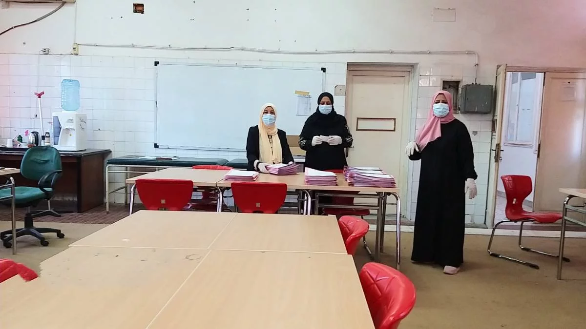 كما أشرف الكادر الوظيفي بالكلية على عملية تنظيم دخول الطالبات لمقار اللجان وفق شروط التباعد، وتم توزيع المعقمات وقياس درجة حرارة الطالبات وكل الملاحظين. ولله الحمد نظرآ للجهود المكثّفة المبذولة من قِبل أعضاء اللجنة والكادر الوظيفي بالكلية والجهاز الأمني من مديرية أمن طرابلس وجهاز إسعاف بلدية سوق الجمعة، سارت الامتحانات بشكل إيجابي من اليوم الأول لليوم الثالث وتم توفير المناخ المناسب لتُجري الطالبات الامتحانات على خير مايرام.