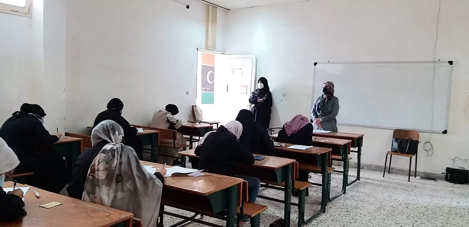 حيث تم تنظيم دخول الطلبة إلى القواطع المؤدية للقاعات الدراسية على تمام الساعة التاسعة صباحًا، بعد تطبيق كافة الإجراءات الاحترازية التي أوصت بها اللجنة الفرعية لجائحة كورونا بالكلية، وتوجّه الطلبة للجانهم وفقًا للجداول المُعدّة مُسبقًا من قِبل قسم الدراسة والامتحانات، وقامت اللجنة بتسليم الملاحظين أوراق الامتحانات وتم توزيعهم على اللجان الممتحنة.