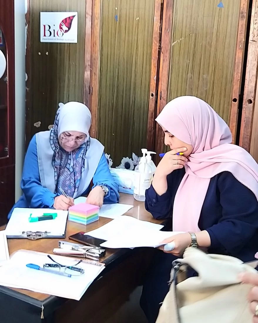 قامت اللجنة المكلّفة من إدارة الكلية بمتابعة متطلبات الجودة في الأقسام العلمية اليوم صباحًا بقيادة السيدة وكيل الشؤون العلمية بالكلية د. نجاة القاضي رفقة أعضاء اللجنة: