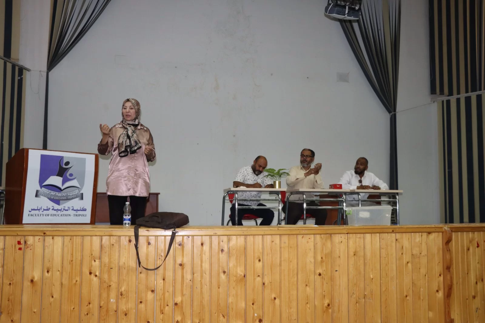 4/ 7/ 2022 على تمام الساعة الثانية عشر والنصف ظهرًا بمسرح كلية التربية- طرابلس، بالإشراف على فعاليات انتخاب نقابة أعضاء هيئة التدريس بكلية التربية- طرابلس وأعضاء اللجنة هم: