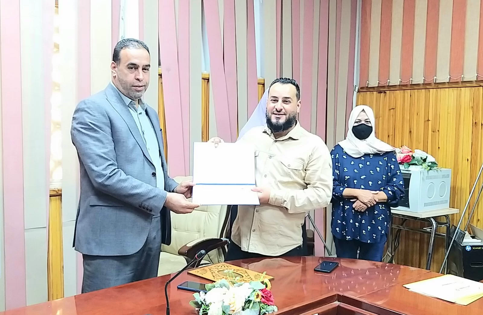وتم تكريم السيد عبد الفتاح ديهوم مدير مكتب الشؤون الإدارية ، والسيد محمد أغاق مكتب الخدمات لمجهوداتهم الكبيرة بالكلية وإخلاصهم في عملهم.