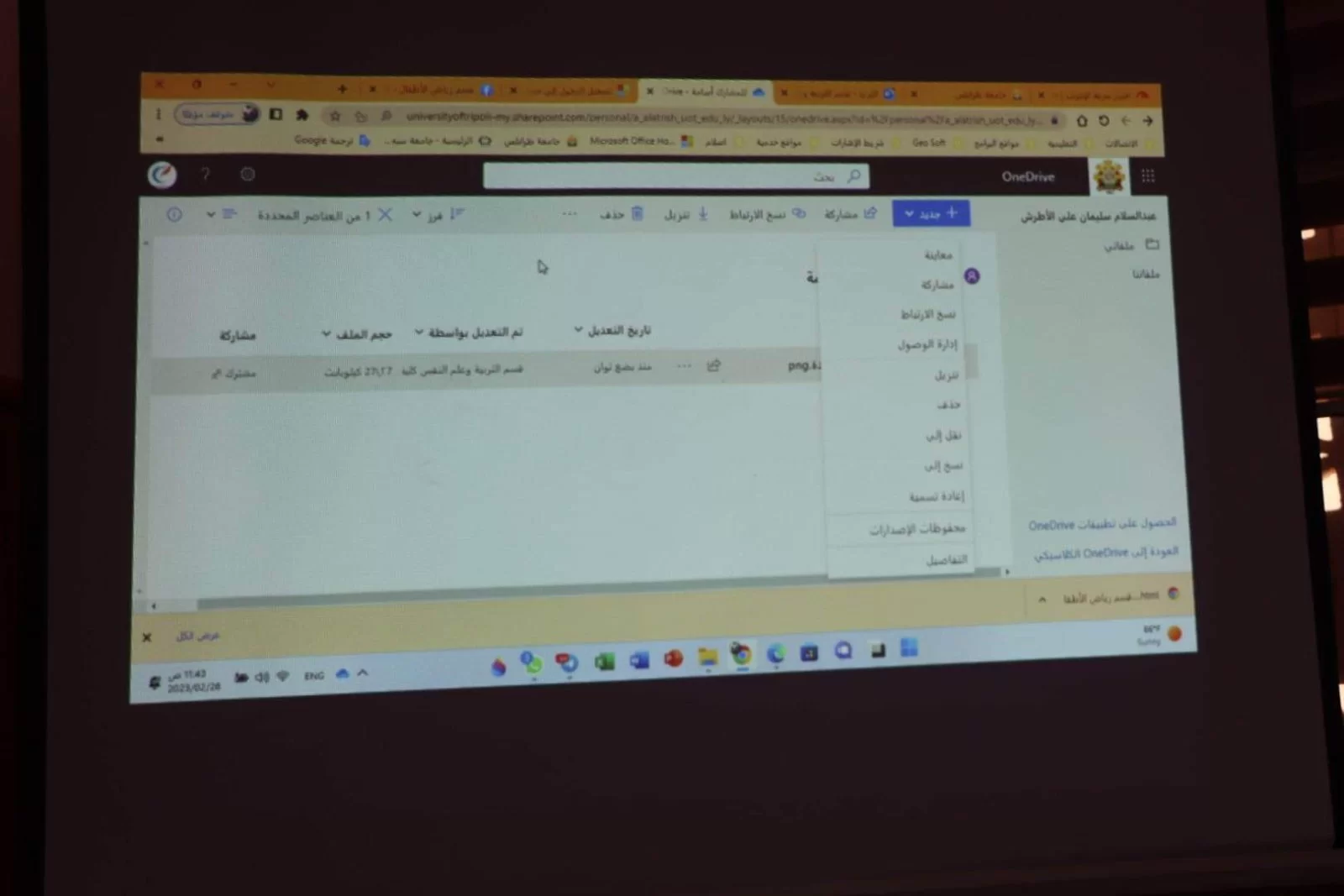 ورشة عمل حول استخدام التخرين السحابي One Drive في إدارة وتنظيم الأقسام العلمية
