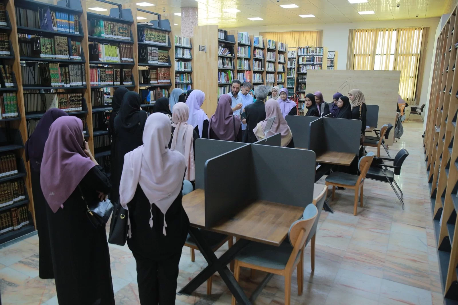 تركنا بعد ذلك، ما تحتويه الشاشة الإلكترونية، وانطلقنا إلى ما يحتويه الواقع، فتجولنا في أروقة واركان المكتبة ورأينا ولمسنا عملياً ما تحتويه المكتبة من كتب ومراجع ومواضيع ورسائل ومجلات علمية وبحوث ودوريات، وتعرفنا على أركان ومرافق المكتبة، وعلى أنظمة وإرشادات المكتبة الكنز، وكافة ما يتعلق بجوانب تسييرها وإدارتها وتنظيمها.