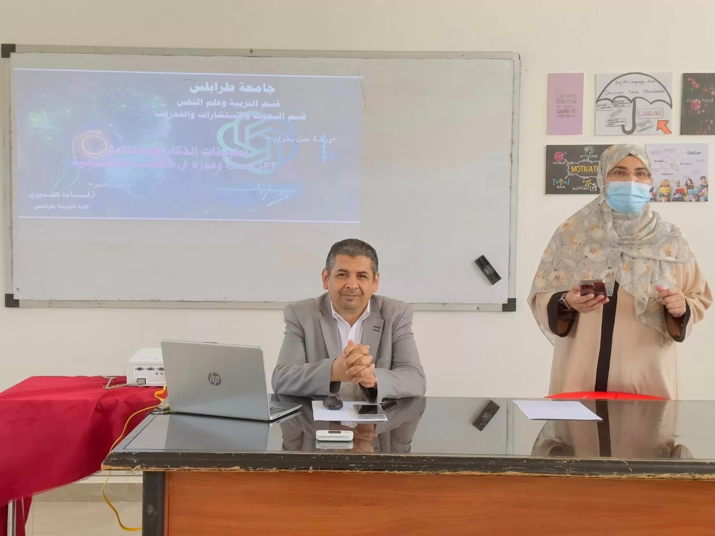 في اطار حرص مجلس قسم التربية وعلم النفس على تطوير مهارات أعضاء هيئة التدريس ومواكبتهم لمستحدثات التكنولوجيا والتقنيات المتطورة وتوظيفها لصالح العملية التعليمية نظم القسم اليوم الخميس بتاريخ 1/6/2023 بالتعاون مع قسم البحوث والاستشارات والتدريب بالكلية ورشة عمل بعنوان "الذكاء الاصطناعي ودوره في العملية التعليمية" من إعداد وتنفيذ الأستاذ أسامة مسعود القديري عضو هيئة التدريس بقسم التربية وعلم النفس تناولت الورشة المحاور التالية: مفهوم الذكاء الاصطناعي. أهميته وأهدافه ومميزاته واستخداماته ومخاطره وكيفية الدخول للتطبيق ChatGpt والتسجيل فيه. وقد حضر لفيف من الأساتذة من مختلف كليات جامعة طرابلس اضافة لأساتذة الكلية وأثنوا على المعلومات القيمة التي قدمت فيها وطالبوا بإقامة المزيد من هذه الورش التعليمية التثقيفية في مجال المستحدثات التكنولوجية والتقنيات المعاصرة.ا.د. مسعودة الحسيني رئيس القسم