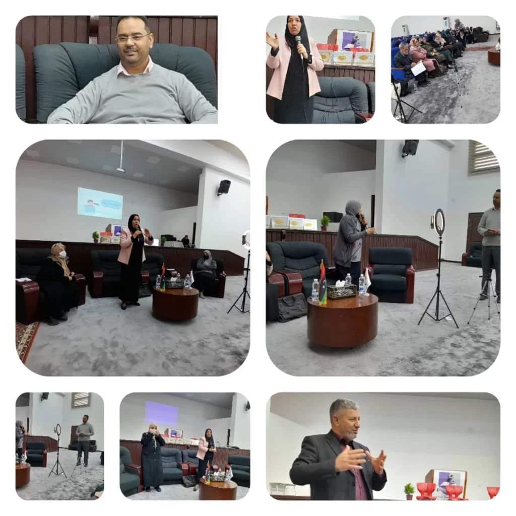 جلسةحوارية بعنوان "اضطراب طيف التوحد، الأسباب، التشخيص، العلاج"أطفال اليوم هم رجال الغد وعماد المستقبل، وهم الثروة البشرية التي يعتمد عليها المجتمع في الدفع بعجلة التطور والتقدم، ، ويعتبر الأطفال الذين يعانون من اضطراب طيف التوحد فئة مهمة وبحاجة للدعم والتأهيل من خلال التدخل المبكر ، وتقع على عاتق المؤسسات التربوية مهمة نشر ثقافة تقبل الاختلافات وتقديم المساندة والدعم لهذه الفئة، وبمبادرة طيبة من د. محمد علي الساحلي أستاذ مقرر "علم النفس الفسيولوجي ود. انتصار سالم أبونعامة أستاذة مقرر الصحة النفسية نظم قسم العلوم التربوية والنفسية يوم الخميس الموافق 25/1/2024 حوارية تثقيفية داعمة للمقررات الدراسية لطلاب القسم، وبالتعاون مع أ. فاطمة حسين الأشقر رئيسة مكتب خدمة المجتمع والبيئة بالكلية استضاف القسم نخبة من الخبراء الأفاضل في المجال من داخل القسم وخارجه: وهم د. سالمة الأريل مديرة مركز طرابلس لذوي الاحتياجات الخاصة، أ. انتصار على البوش مديرة روضة الرشاد للفئات الخاصة، ود. عائشة محمد أبوحجر ود. أروى الغول أعضاء هيئة التدريس بالقسم وبحضور أساتذة القسم والطالبات، وبعض أولياء الأمور، وقد تمثلت محاور الجلسة فيما يلي: مفهوم اضطراب طيف التوحد، أسبابه، الأعراض التشخيصية، مستوياته، طرق التعامل من أجل التأهيل، بعض الأخطاء الشائعة في التشخيص، خيارات العلاج، دور أولياء الأمور في التدخل المبكر، الصعوبات التي تواجه المختصين مع الحالات وأهاليهم. تخلل الحوارية أسئلة واستفسارات حول اضطراب طيف التوحد أجاب عليها المحاورين من خلال خبرتهم في المراكز التي يعملون بها.
