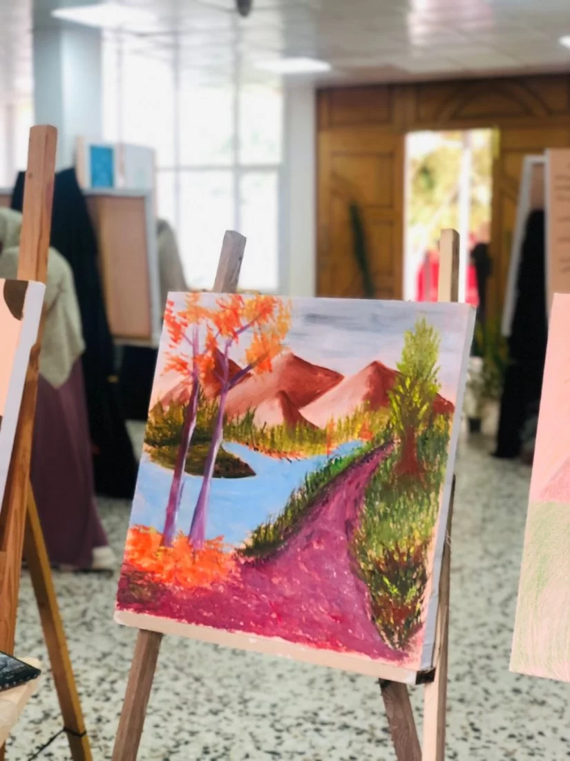 رافق الاحتفال بيوم البيئة العالمي مرسم اشترك فيه الطالبات من جميع أقسام الكلية بلوحات مستوحاة من الطبيعة وبعضها يحمل معاني ضمنية لحماية البيئة ورعايتها من التلوث والتصحر، وفي نهاية المسابقة تم تحكيم اللوحات من قبل لجنة من خبراء قسم التربية الفنية وتم تكريم الفائزات بأفضل اللوحات.