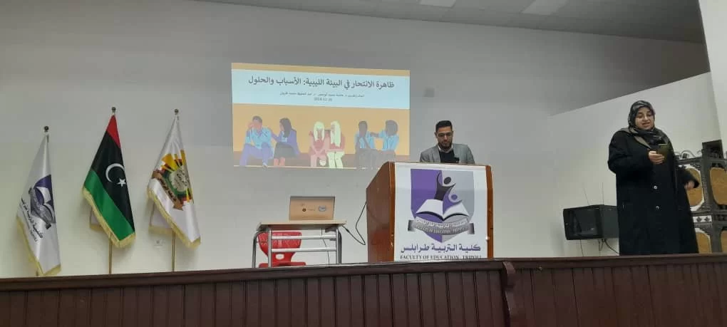 الانتحار كبيرة من الكبائر التي حرمها ديننا الإسلامي الحنيف، وتوعد مرتكبها بأشد العقوبات، وهي قضية متزايدة تهدد المجتمعات، وتؤثر على الفئات العمرية المختلفة، خاصة الشباب عماد الأمة وقوتها، وقد أطلقنا عليها مصطلح "ظاهرة" دون النظر لآخر الإحصائيات ونسب انتشارها؛ لأنها بالنسبة لنا كمجتمع إسلامي قضية "قليلها كثيرٌ وفادح الخطورة"؛ ولهذا نظم قسم العلوم التربوية والنفسية بالتعاون مع قسم اللغة العربية والدراسات الإسلامية تحت شعار " الانتحار ليس حلاً" محاضرة توعوية توجيهية بعنوان " ظاهرة الانتحار في البيئة الليبية: الأسباب والحلول" وذلك بتاريخ: 26/12 /2024 وكان الهدف منها اكساب الحاضرين فهماً أعمق لدور الفرد في تعزيز الصحة النفسية، والقدرة على المساهمة بفعالية في دعم الأشخاص المعرضين للخطر، وبناء مجتمع أكثر وعيًا ودعمًا وإيماناً وصلاح وقدوة حسنة.