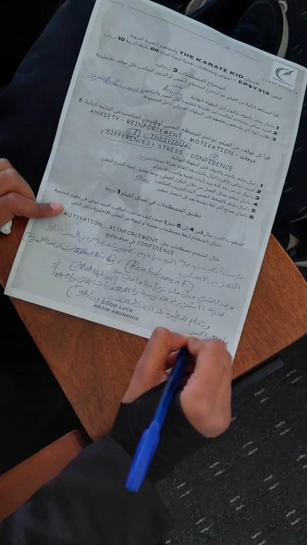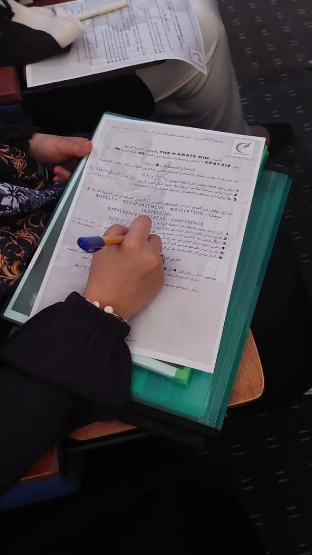نشاط علمي تدريبي بعنوان"تحليل فردي لفيلم تربوي "نظمت ا.هاجر ابو رخيص يوم الأحد الموافق لتاريخ 9\11\2025. نشاط إثرائي خاص بطلبة المقرر بقاعة المرحوم بإذن الله الفتحلي للتدريب ، يهدف إلى تعزيز فهمهم للمصطلحات التربوية من خلال تجربة تعليمية تفاعلية وفردية. لطالباتها في مقرر (نصوص ومصطلحات نفسية تربوية باللغة الإنجليزية) حيث تم عرض فيلم تعليمي يتناول موضوعات تربوية مرتبطة بالمصطلحات التي سبق للطلبة دراستها. بعد المشاهدة، طُلب من كل طالبة بشكل فردي استخراج المصطلحات التربوية التي ظهرت في الفيلم، وتوضيح معناها وسياق استخدامها، مما يعزز الفهم التطبيقي ويُنمّي الادراك السمعي والبصري وتنمية مهارات التفكير النقدي والتحليل الفردي وتعزيز قدرة الطالب على الربط بين النظرية والممارسة.اهم ماميز هذا النشاط أنه فردي بالكامل، ويُراعى فيه تقييم الجهد الشخصي لكل طالبة.الشكر موصول لأستاذة المقرر المبدعة وللطالبات لتفاعلهم وإلتزامهم بشروط النشاط الإثرائي.