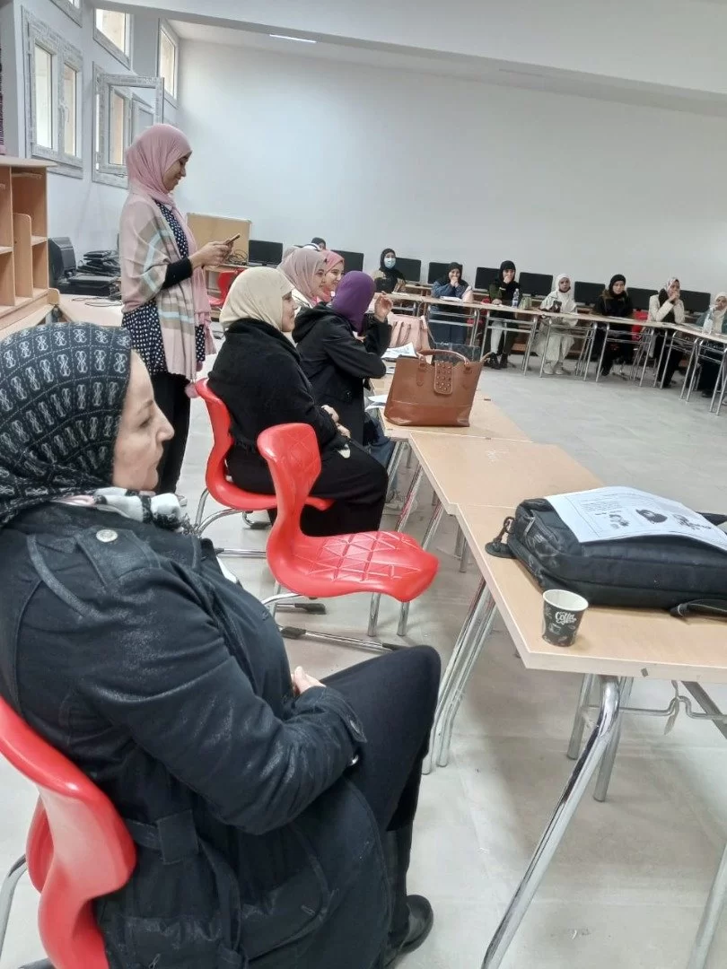 أنتقل الجمع الكريم (الطالبات وأعضاء هيئة التدريس والممثلات عن اتحاد الطلبة)، إلى معمل قسم اللغة الإنجليزية، حيث أنتقل البرنامج من جولة حول أقسام ومكاتب ومرافق الكلية، إلى جولة تثقيفية توعوية تربوية علمية.