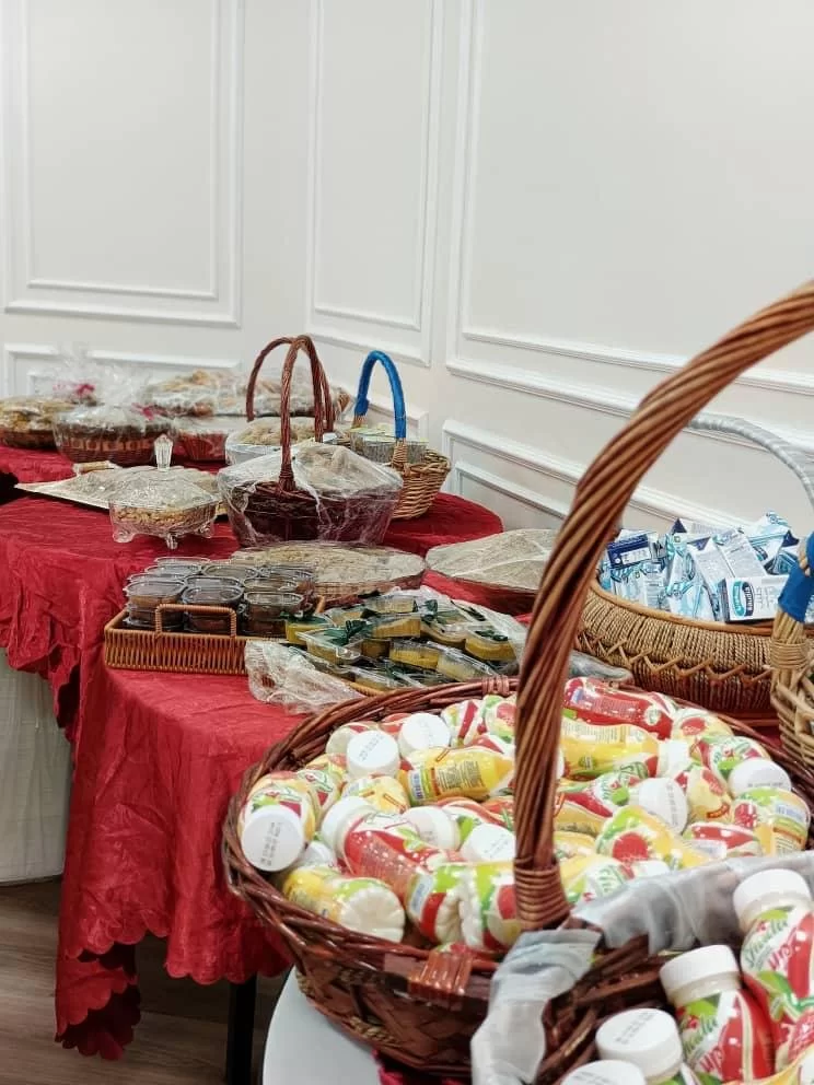 وضعت الهدايا في أكياس احتوى كل منها على تشكيلة جميلة قيمة تعكس كرم واهتمام وجدية المشاركين. أحتوى الكيس على وشاح، وحذاء، ومواد تنظيف وغيرها من مواد وحاجيات ومستلزمات وأدوات. ناهيك عما قدمه القسم مما لذ وطاب من أطعمة وحلويات وعصائر ومشروبات، يخيل إليك أنها مائدة من السماء، توجت ببخور وحناء وسفرة ليبية، وكل ذلك لترطيب خاطر سيدات مسنات دار عليهن الزمن، فوجدن قلوب حنونة رحيمة تحنو عليهن وتنسيهن شيء من معاناتهن.