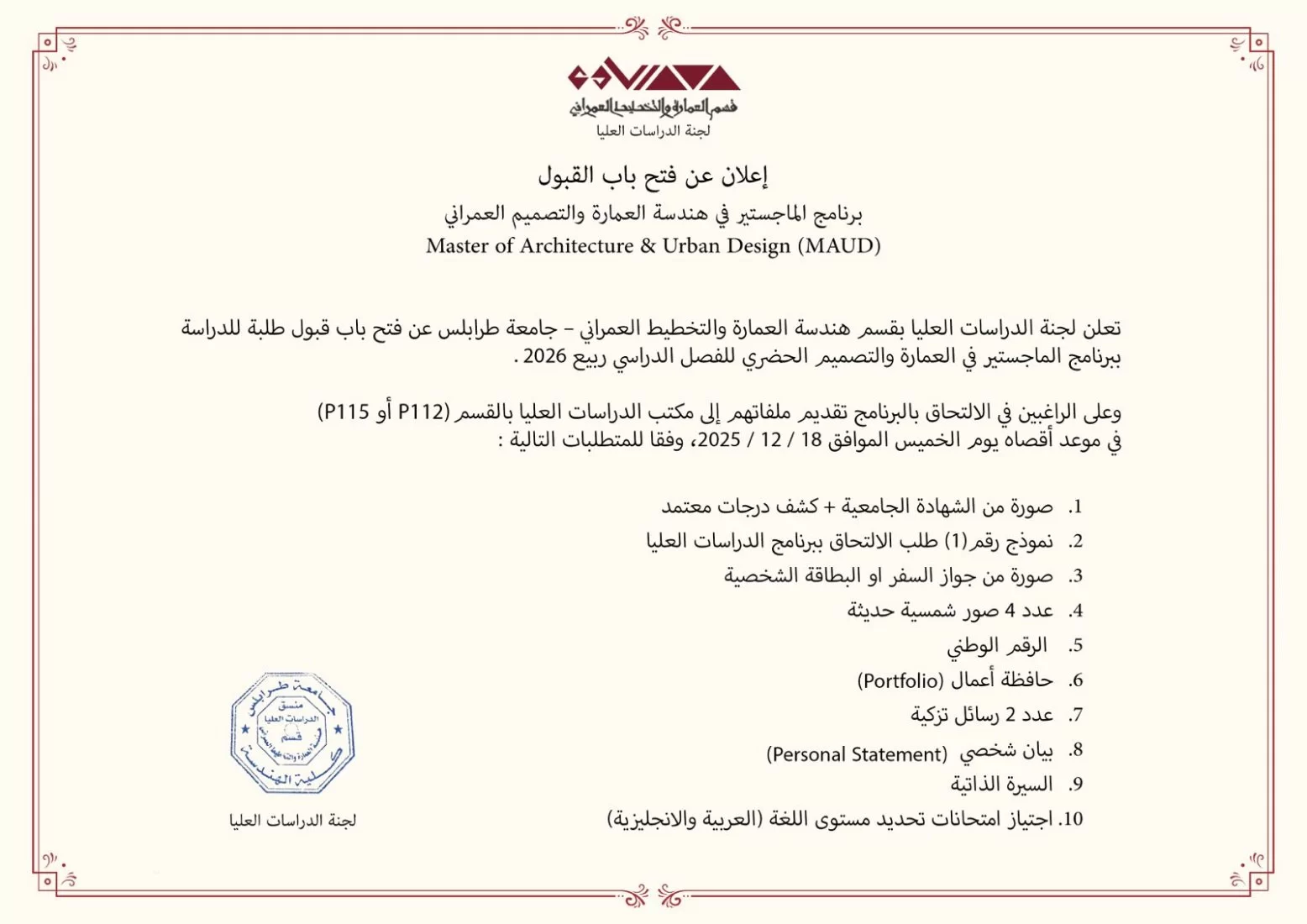 التفاصيلماجستير - العمارة والتخطيط العمراني