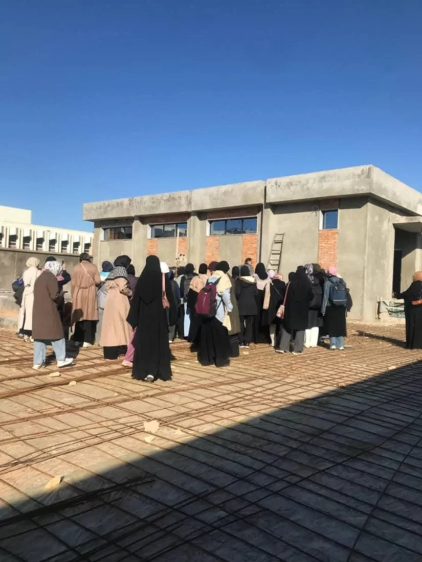 ضمن مقرر انشاء 2 . ومن خلال الزيارة الميدانية لمواقع انشاء بعض الاجزاء من مبنى النووية بجامعة طرابلس وكذلك محطة الكهرباء بالجامعة قام طلبة المقرر تحت اشراف اساتذة المادة الاستاذ علي معتوق والاستاذة ثريا عاشور والمهندسة نجاة التومي بزيارة المواقع وعكس الدروس النظرية على ارض الواقع. وقد استفاد الطلبة من الزيارة الميدانية والتي كان لها الاثر الكبير في فهم العناصر الانشائية.