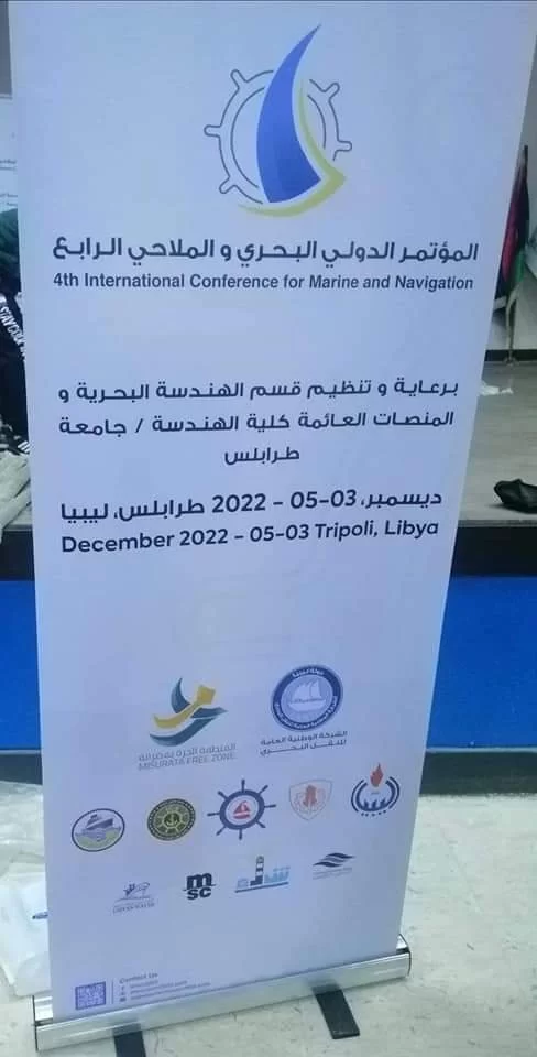 برعاية وتنظيم قسم الهندسة البحرية والمنصات العائمة بكلية الهندسة جامعة طرابلس وعلى مدى ثلاثة أيام من 3-5 ديسمبر 2022 اقيت فعاليات المؤتمر الدولي البحري والملاحي الرابع، وبمشاركة العديد من الجهات ومنها الشركة الوطنية العامة للنقل البحري والمنطقة الحرة مصراتة ومصلحة الموانئ والنقل البحري ورئاسة أرك