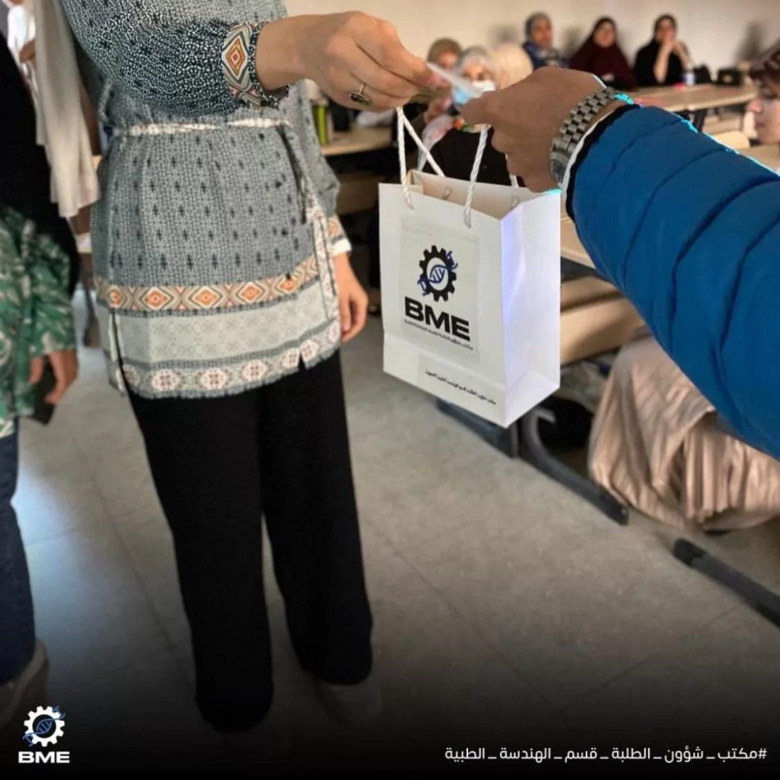 سُعدنا بتواجد جميع زملائنا وأعضاء هيئة التدريس باليوم التعارفي لطلبة قسم الهندسة الطبية الحيوية ، والذي تضمن فقرات وفعاليات متنوعة للتعريف بالقسم والرحلة الدراسية فيه ومجالات العمل للخريج، بالإضافة لعمل مكتب شؤون الطلبة بالقسم وما يقدمه من خدمات ،كما تم الإعلان عن البوت الخاص بقسم الهندسة الطبية الحيوية الذي يحوي كل ما يحتاجه الطالب من مناهج ومصادر للمواد الدراسية وأخيرا اختتم اليوم ببعض المسابقات الترفيهية والثقافية ، كل الشكر لجميع من حضر ونرجوا أن يكون هذا اليوم قد نال إستحسانكم .نترككم مع مجموعة من الصور التي توضح فعاليات اليوم ،شاركونا بصور أخرى من تصويركم كما ننتظر آرائكم في التعليقات .