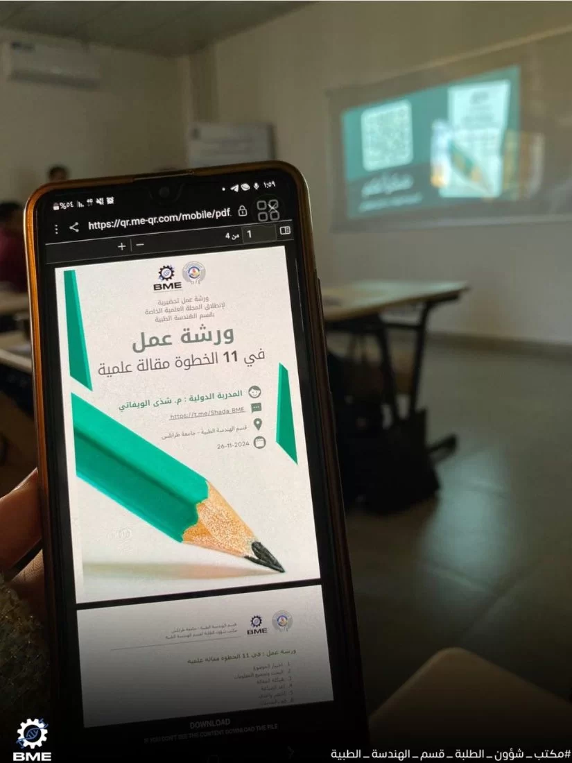 انطلقت اليوم ورشة كتابة المقالة العلمية بعطاء المهندسة شذى الويفاتي ،تضمنت الورشة أساسيات كتابة المقالات العلمية بطريقة مبسطة والخطوات المتبعة في عملية البحث والصياغة ، تهدف هذه الورشة للرفع من مهارات الطلبة في البحث والكتابة وتشجيعهم على المشاركة بنصوص ضمن مجلة الهندسة الطبية الحيوية الطلابية التي سيتم إصدار أول عدد منها قريبا