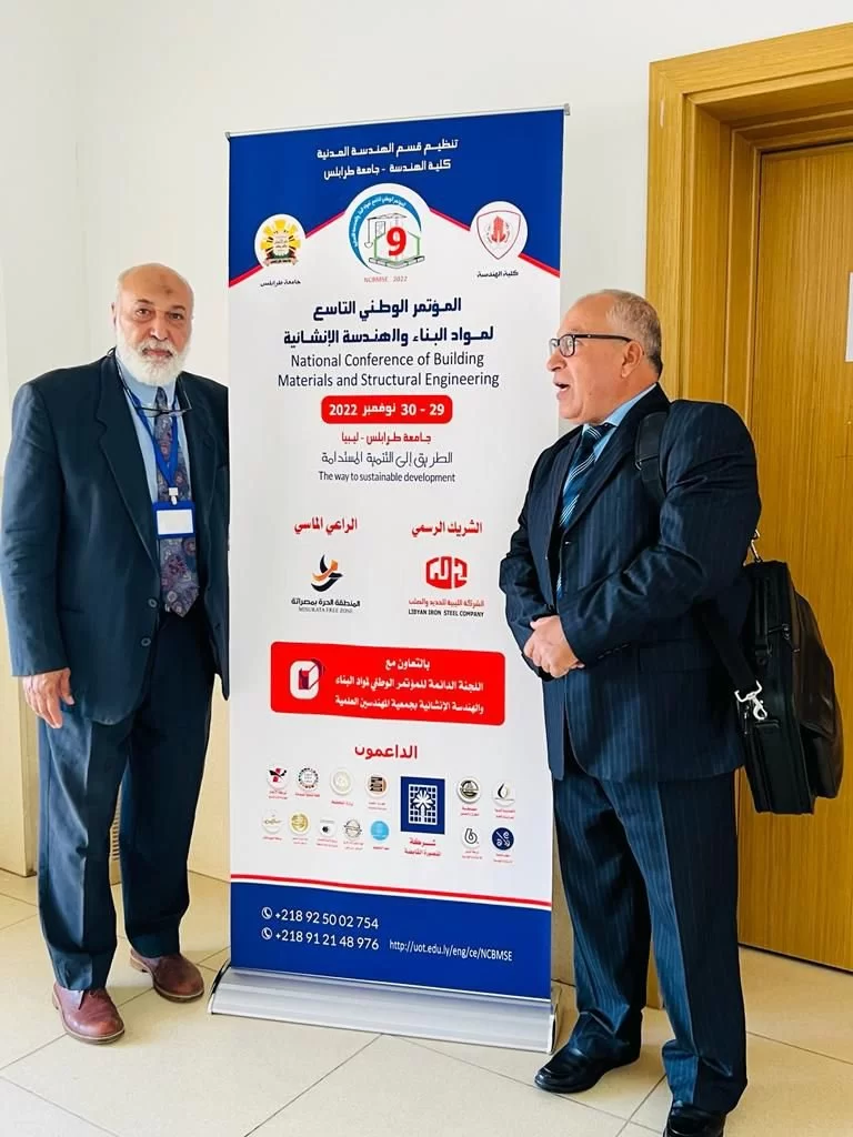 أقيم بكلية الهندسة المؤتمر الوطني التاسع لمواد البناء والهندسة الانشائية يومي 29/30 نوفمبر 2022 بكلية الهندسة جامعة طرابلس وتم عرض ومناقشة مجموعة من الورقات البحثية بلغت عدد 23 ورقة بحثية، واختتم المؤتمر فعالياته يوم الاربعاء 30 نوفمبر 2022 حيث تم تكريم المشاركين والداعمين لهذا المؤتمر والقائمين على نجاحه واتفق على ان يكون المؤتمر العاشر بمدينة سرت وخلص المؤتمر إلى مجموعة من التوصيات بهذا المجال
