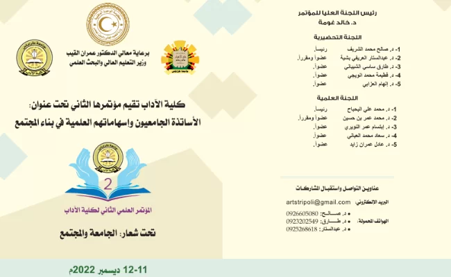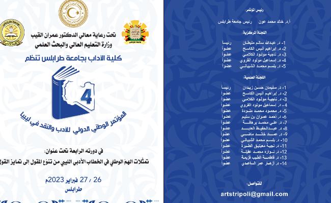 كلية الآداب - تنظم المؤتمر الوطنى الدولي للأدب والنقد في ليبيا