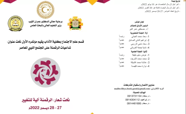 المؤتمر العلمي - لقسم علم الاجتماع تحت عنوان (تداعيات الرقمنة على المجتمع الليبي) تحت شعار الرقمنــــة آليـــة للتغير