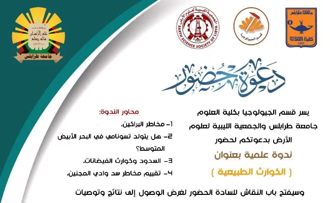 كلية الآداب - قسم الجغرافيا ونظم المعلومات الجغرافية يقيم مؤتمره العلمي الخامس حول التخطيط والتنمية المكانية في ليبيا 28/ نوفمبر الى 29/ نوفمبر