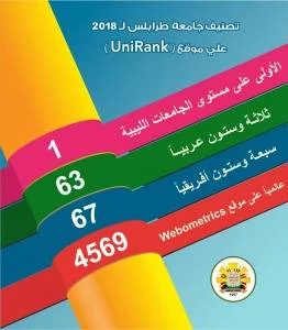 للسنة الثانية على التوالي جامعة طرابلس الاولى محلياً بحسب موقع (UniRank) لتصنيف الجامعات.تقدمت جامعة طرابلس في التصنيف العالمي والافريقي والعربي حسب موقع (UniRank ) الذي يتابع حركة المواقع الالكترونية على مستوى جامعات العالم، حيث تصدرت التصنيف المحلي للجامعات الليبية.فيما تقدمت جامعة طرابلس على المس