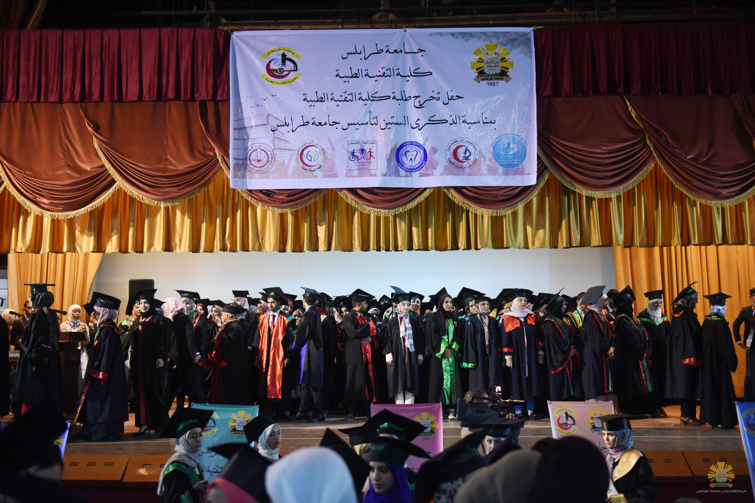 احتفلت كلية التقنية الطبية بمسرح كلية العلوم جامعة طرابلس صباح اليوم الأربعاء الموافق للسادس والعشرون من ديسمبر 2018، بتخريج دفعات من طلابها من كافة اقسام الكلية وذلك بحضور الأستاذ الدكتور "عبدالرزاق العوزي" وكيل الكليات الطبية والمسجل العام للجامعة وعميد كلية التقنية الطبية وبعض من عمداء ووكلاء