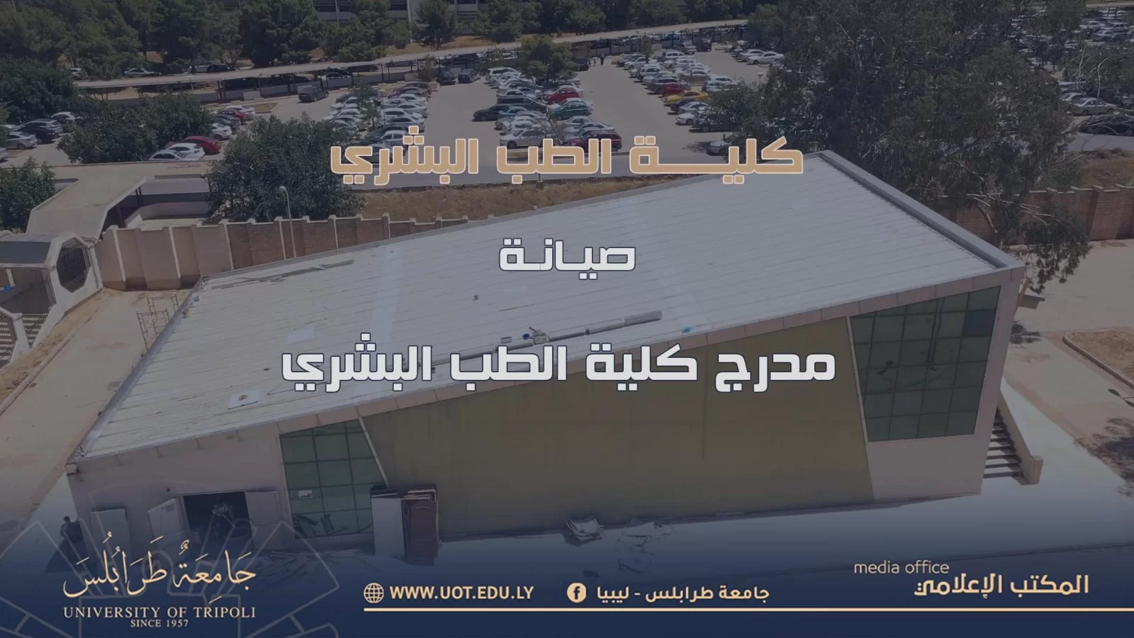 مقتطفات من صيانة مدرجات كلية الطب البشري بجامعة طرابلس والمرافق التابعة لها التي جاءت ضمن الخطة التي وضعتها رئاسة جامعة طرابلس سعياً منها لتوفير بيئة تعليمية ملائمة لأبنائها الطلبة. كما نتقدم بأسمى آيات التقدير والامتنان لكافة الجنود العاملين على إتمام هذا الإنجاز.