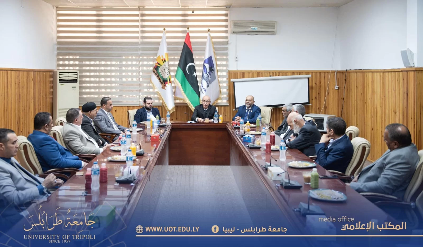 أقيم صباح اليوم الاثنين الموافق 21 نوفمبر 2022م بصالة اجتماعات رئاسة الجامعة الاجتماع الحادي عشر العادي للعام 2022م، بحضور السيد أ.د. خالد عون رئيس جامعة طرابلس والسادة الوكلاء وعمداء الكليات بالجامعة رفقة السادة رؤساء النقابات بالجامعة والسيد المسجل العام بالجامعة. حيث نوقشت عدة ملفات هامة أبرزها م