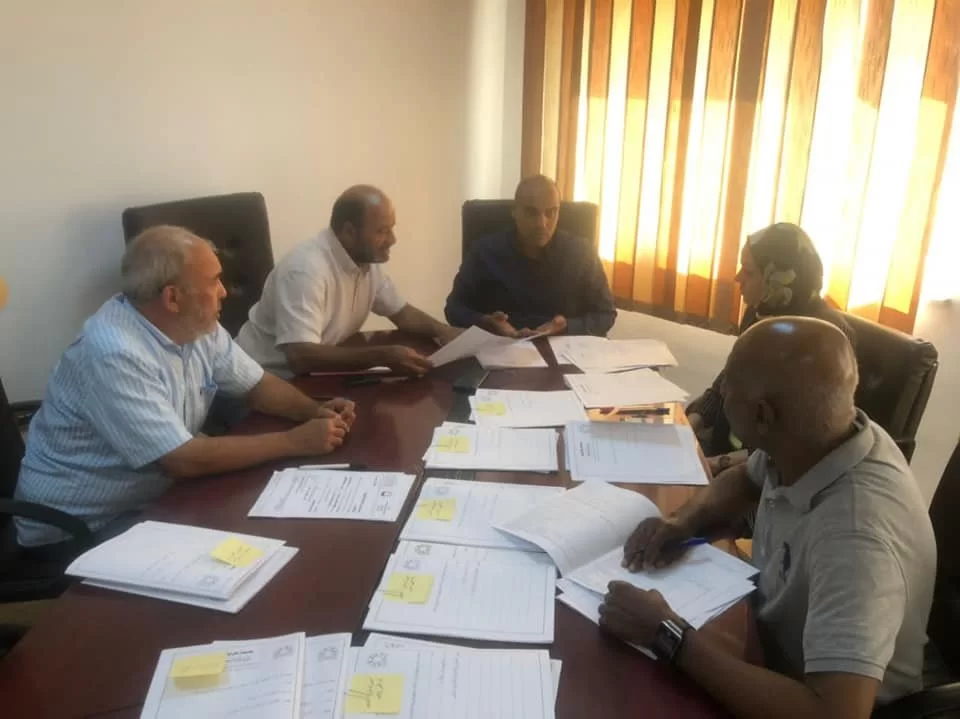 جانب من أعمال اللجنة المكلفة بإعداد التقارير السنوية والتسويات لموظفي إدارة النشاط العام بجامعة طرابلس.